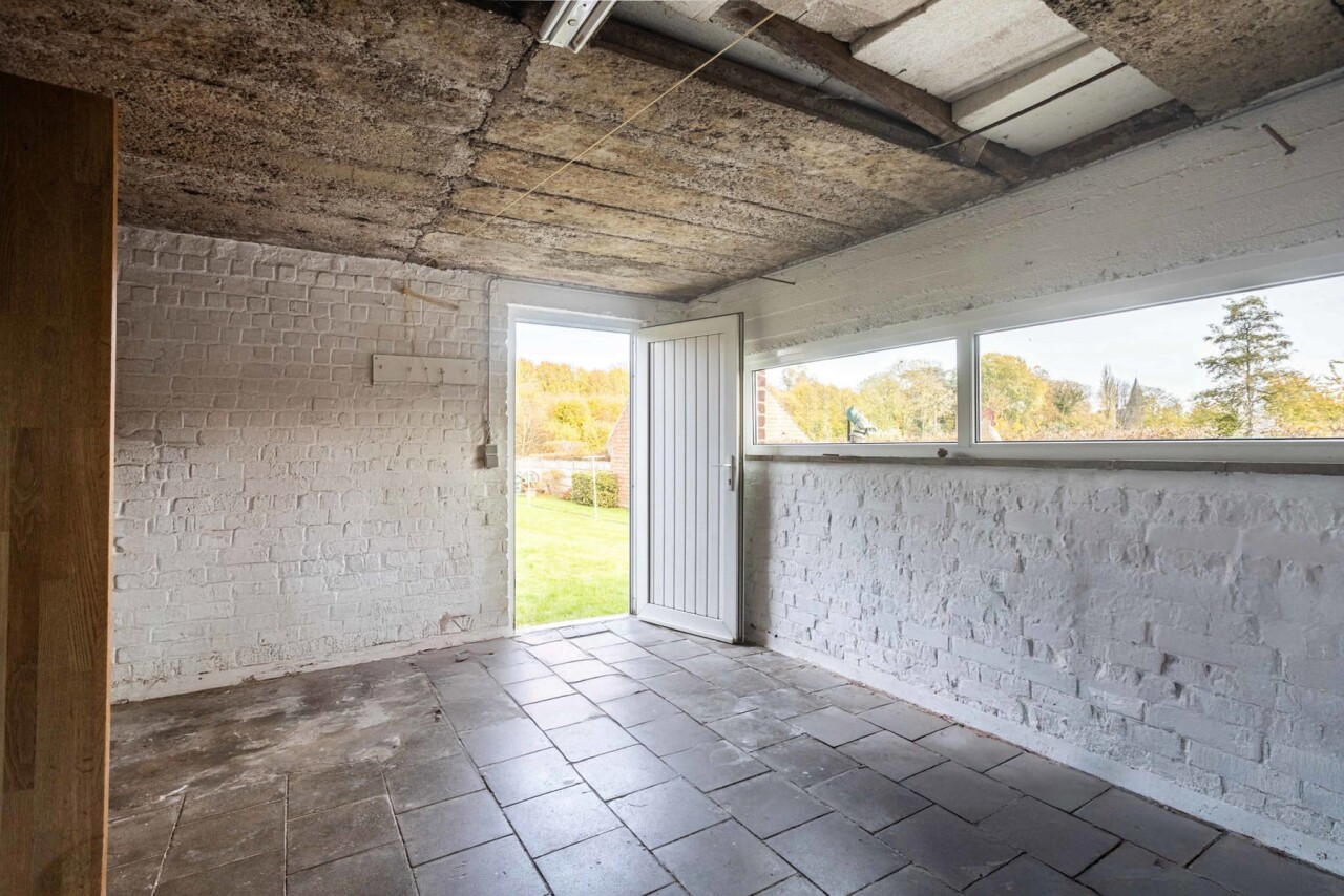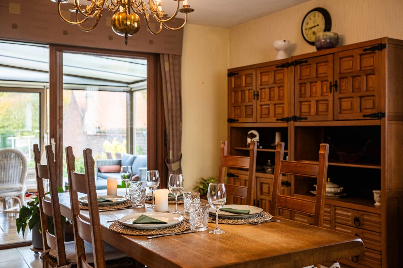 Vous êtes accueilli dans un vaste living comprenant salon et salle à manger, parfaitement relié à la cuisine entièrement rénovée. La véranda lumineuse (25 m²) offre une magnifique vue sur le jardin généreux. À ce niveau se trouvent également un WC invités et un grand espace de rangement.