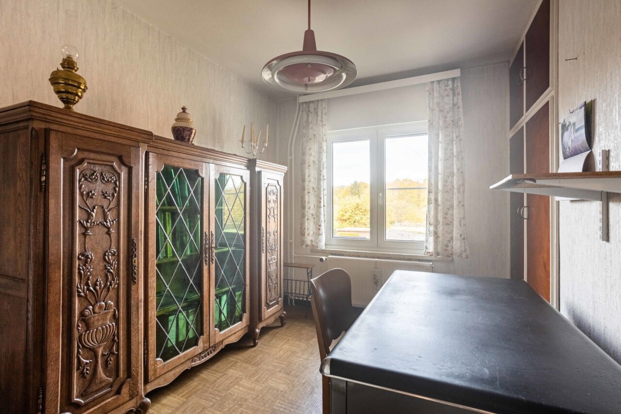 Le premier étage comprend deux grandes chambres (21 m² et 12 m²), un bureau/chambre (9 m²) ainsi qu’une salle de bains avec WC et douche rénovée.