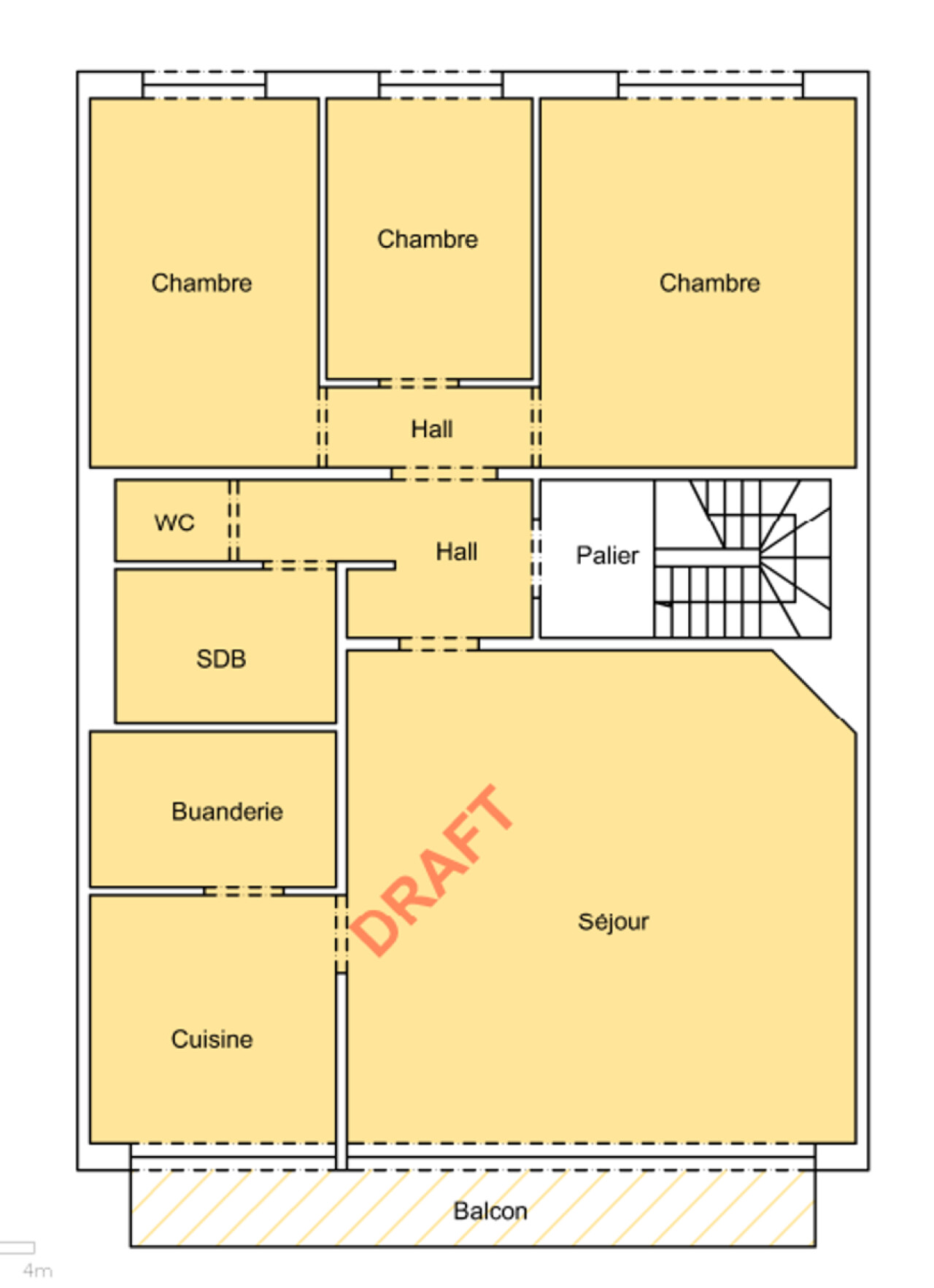 Verder beschikt het appartement over drie slaapkamers (16 m² – 12 m² – 8 m²), een vernieuwde badkamer met inloopdouche en een apart toilet.