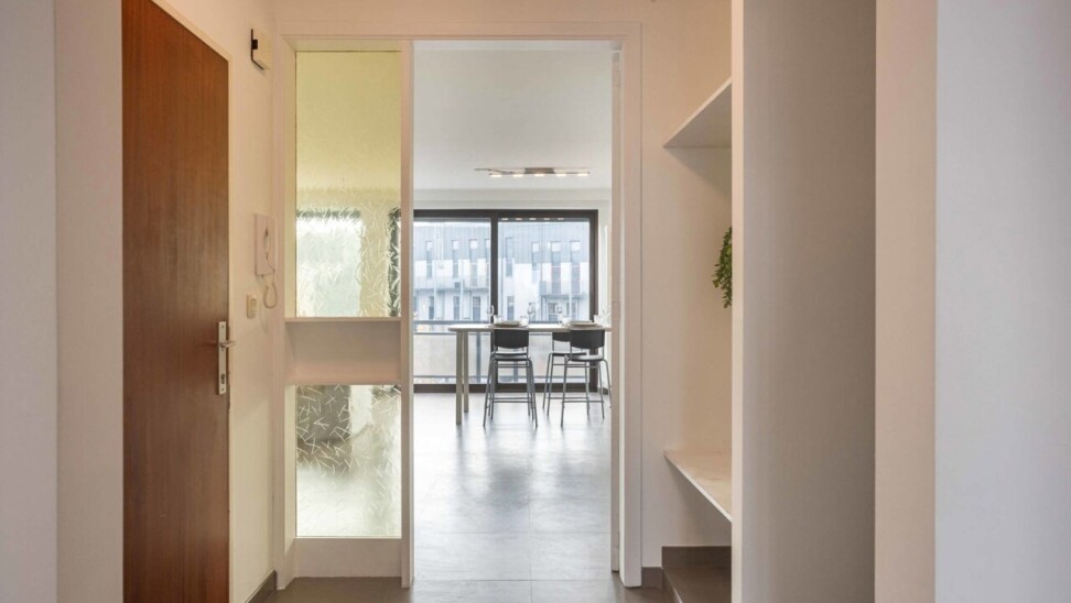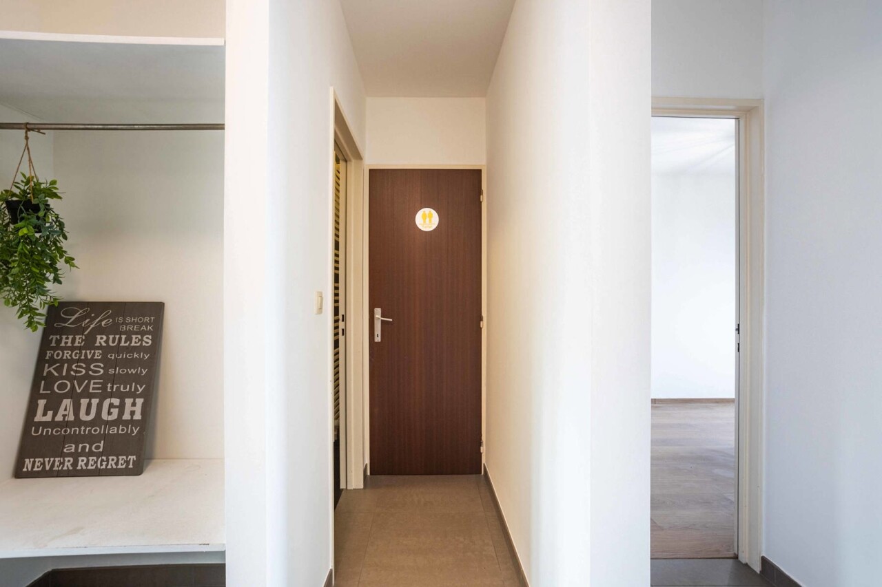 Bij het binnenkomen wordt u verwelkomd door een lichtrijke inkomhal met ingebouwde vestiairekast.