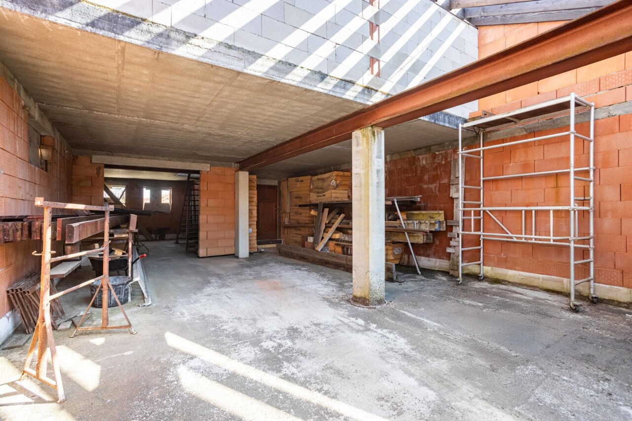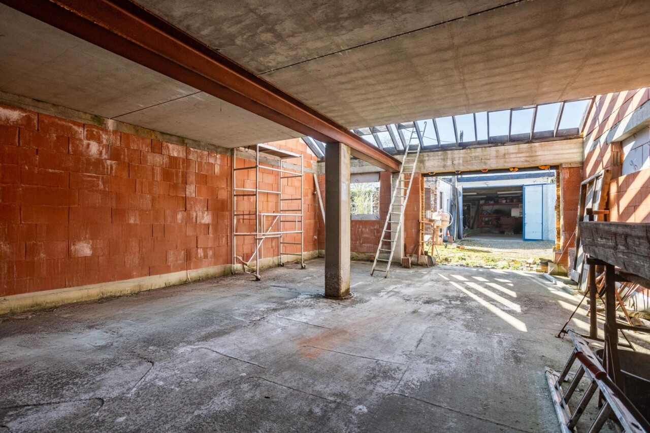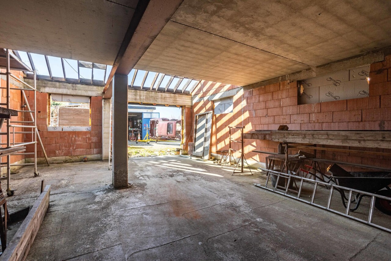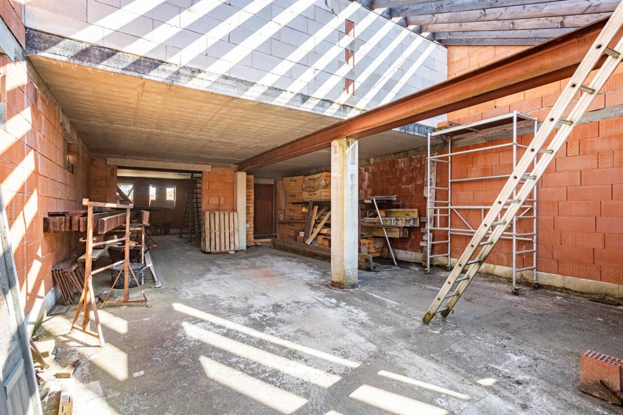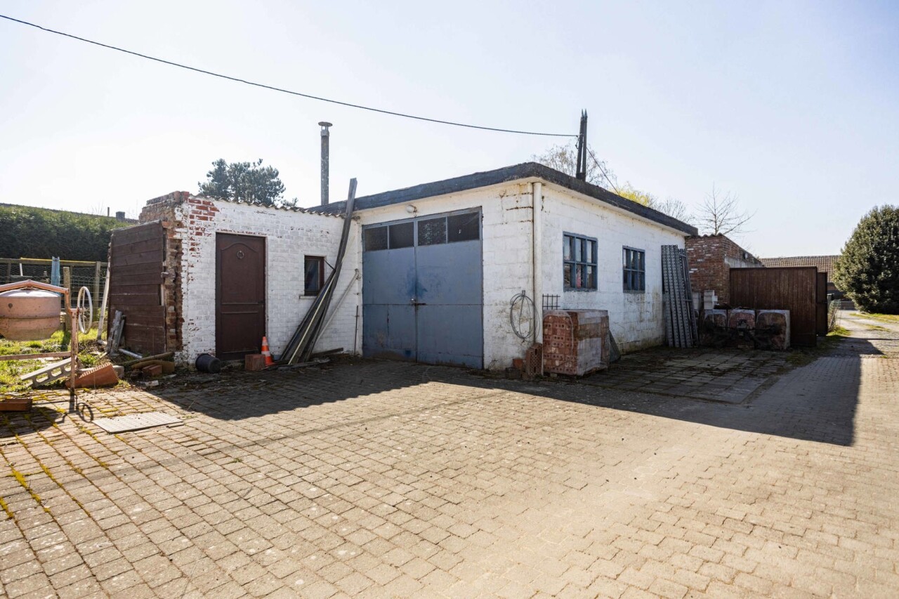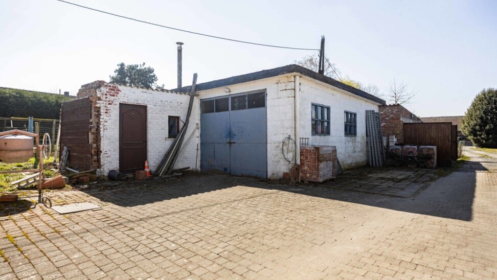 Momenteel staat hier een vergunde loods van 50 m² en achterliggende garage van 30 m² welke ideaal voor hobby, stockage of bedrijfsopslag.