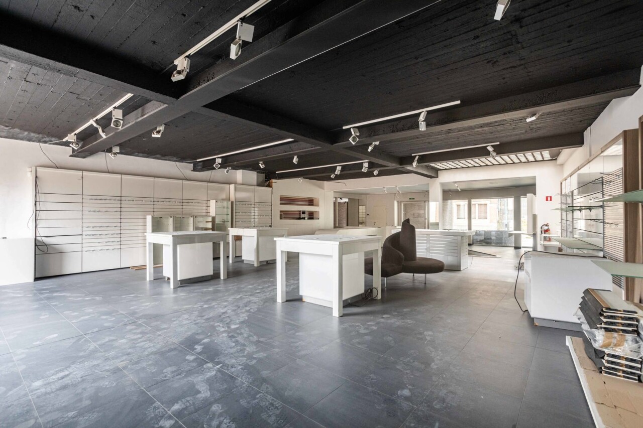 Bij binnenkomst bevindt u zich in een ruime commerciële ruimte van 262 m², die tot voor kort dienst deed als toonzaal.