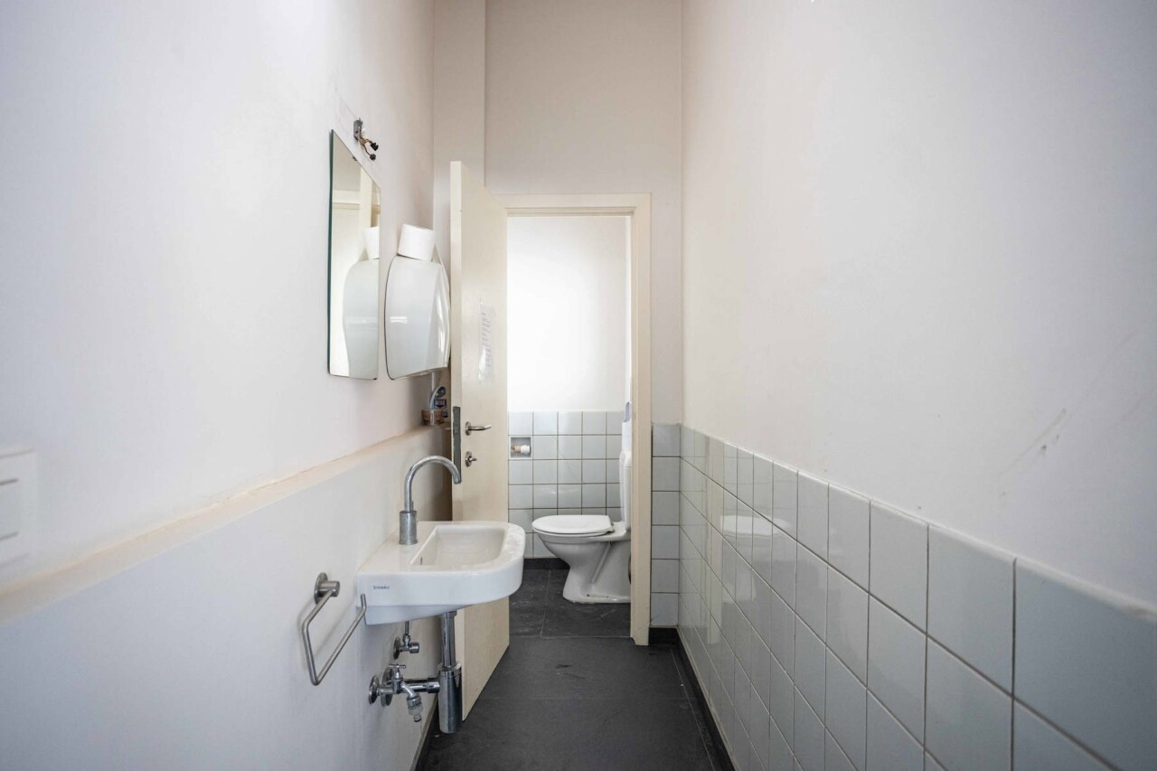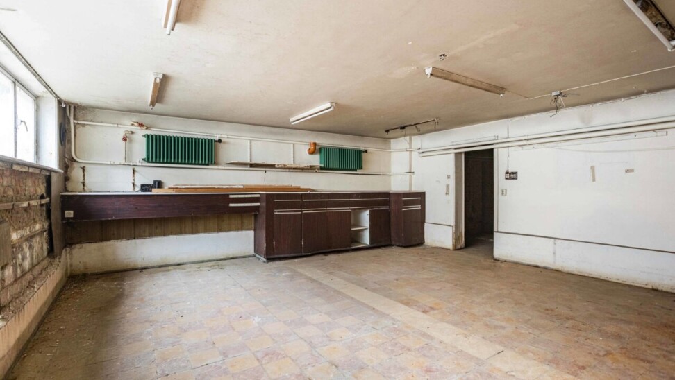 Achteraan bevinden zich bijkomende ruimtes met een totale oppervlakte van 110 m² — ideaal om in te richten als bureauruimtes, berging of andere professionele doeleinden.