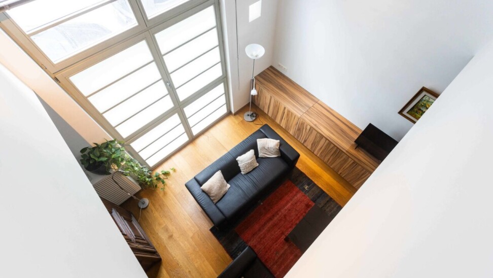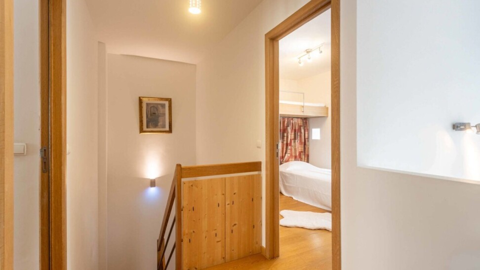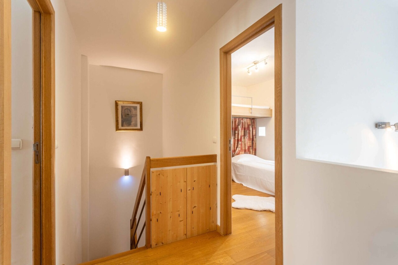 Dankzij de prachtige vide geniet u boven van een mooi zicht op de woonkamer en de grote ramen.