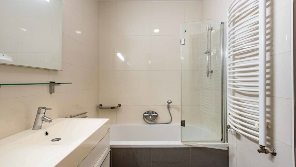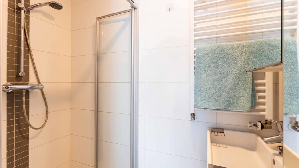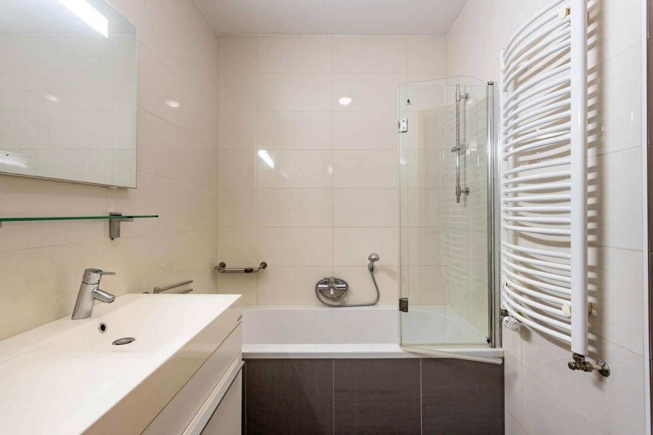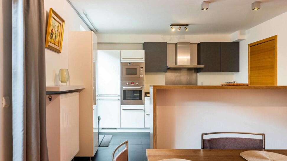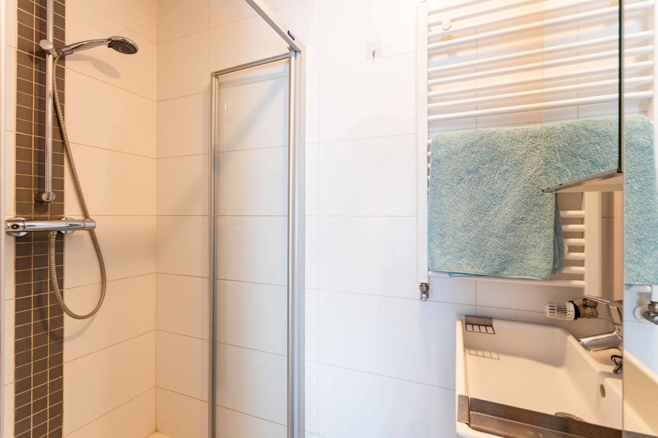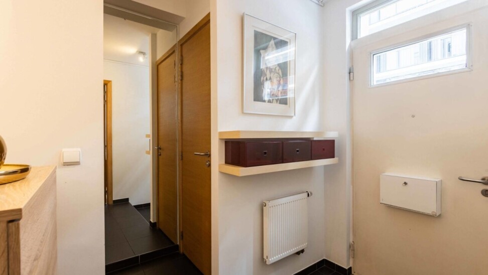 IndelingWe betreden het appartement via de gezellige inkomhal met ingebouwde vestiaire en apart gastentoilet.