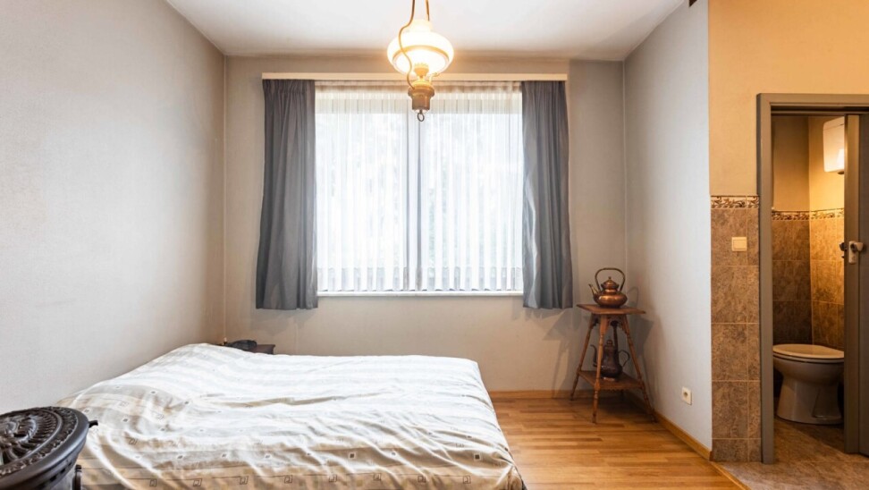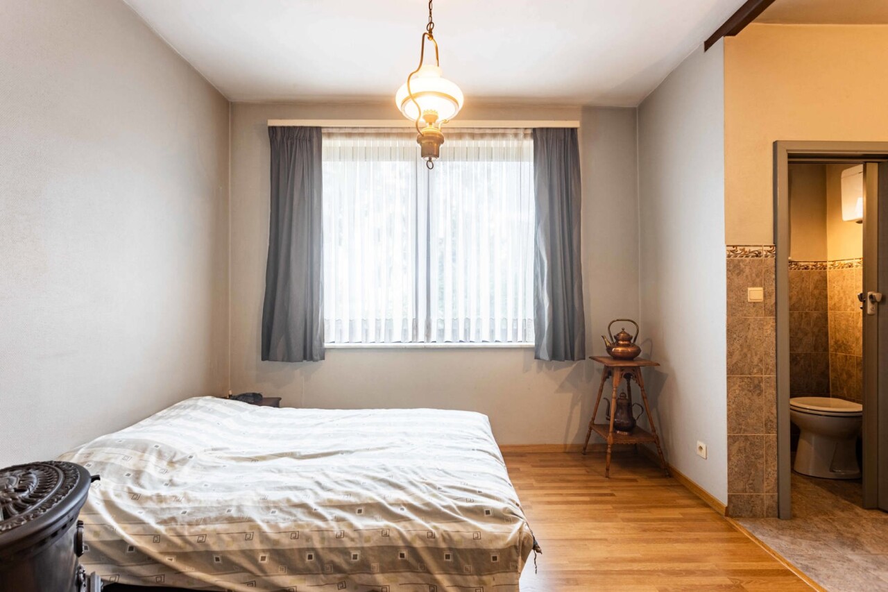 Op de eerste verdieping bevindt zich een ruime slaapkamer van 19 m² en een tweede slaapkamer met ensuite toilet/badkamer. Tussen beide kamers is er een extra ruimte van 20 m² die perfect dienst kan doen als hobbykamer, dressing of bureau.