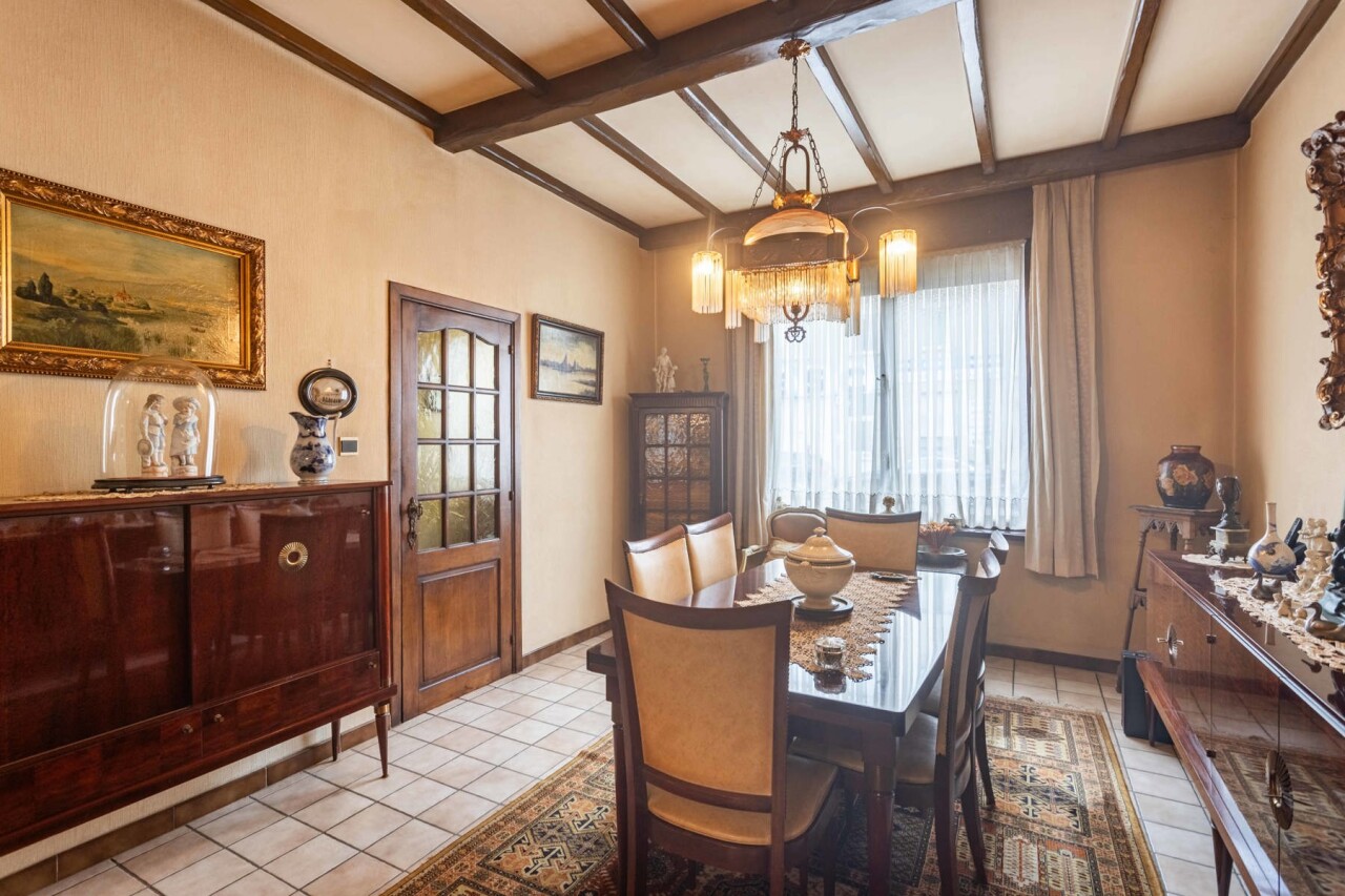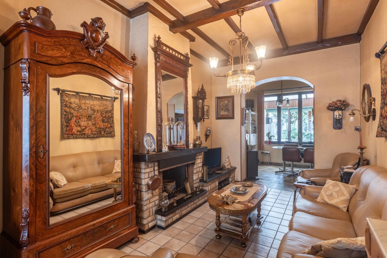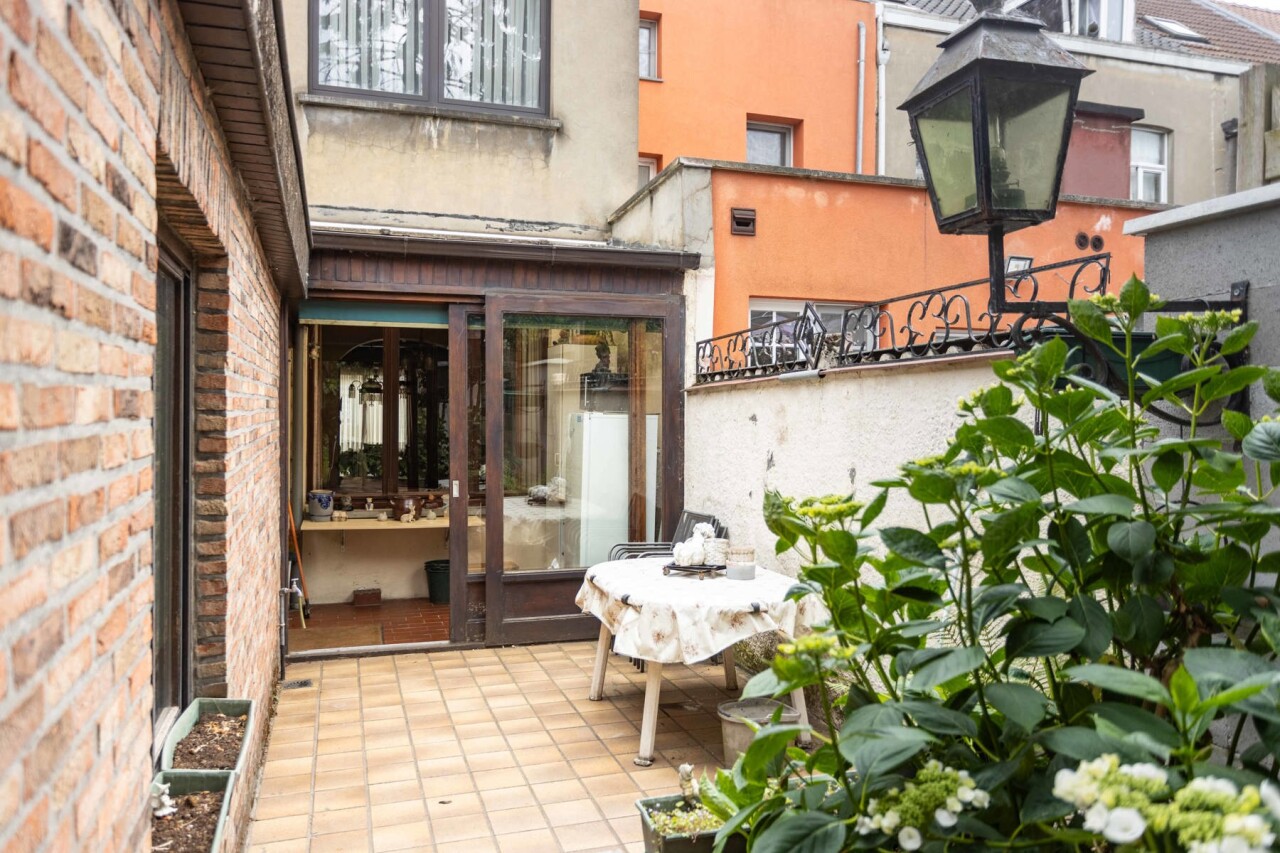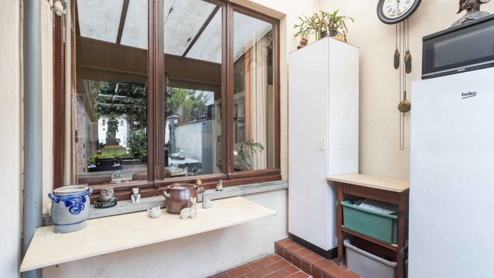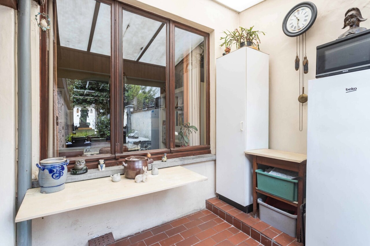 Op het gelijkvloers vinden we een lichtrijke woon- en eetkamer van 26 m², met aansluitend de keuken en bijkeuken. Verder is er een badkamer met bad, douche en dubbele lavabo, evenals een apart toilet. Vanuit de eetkamer heeft u zicht op de veranda/wasplaats en de gezellige stadstuin. Ideaal voor wie groene vingers heeft en graag tot rust komt in het hart van de stad.