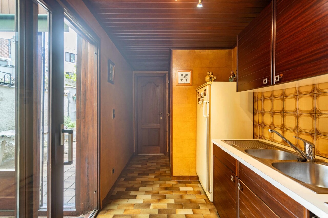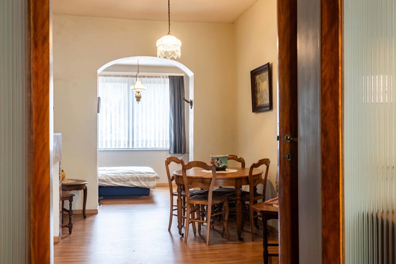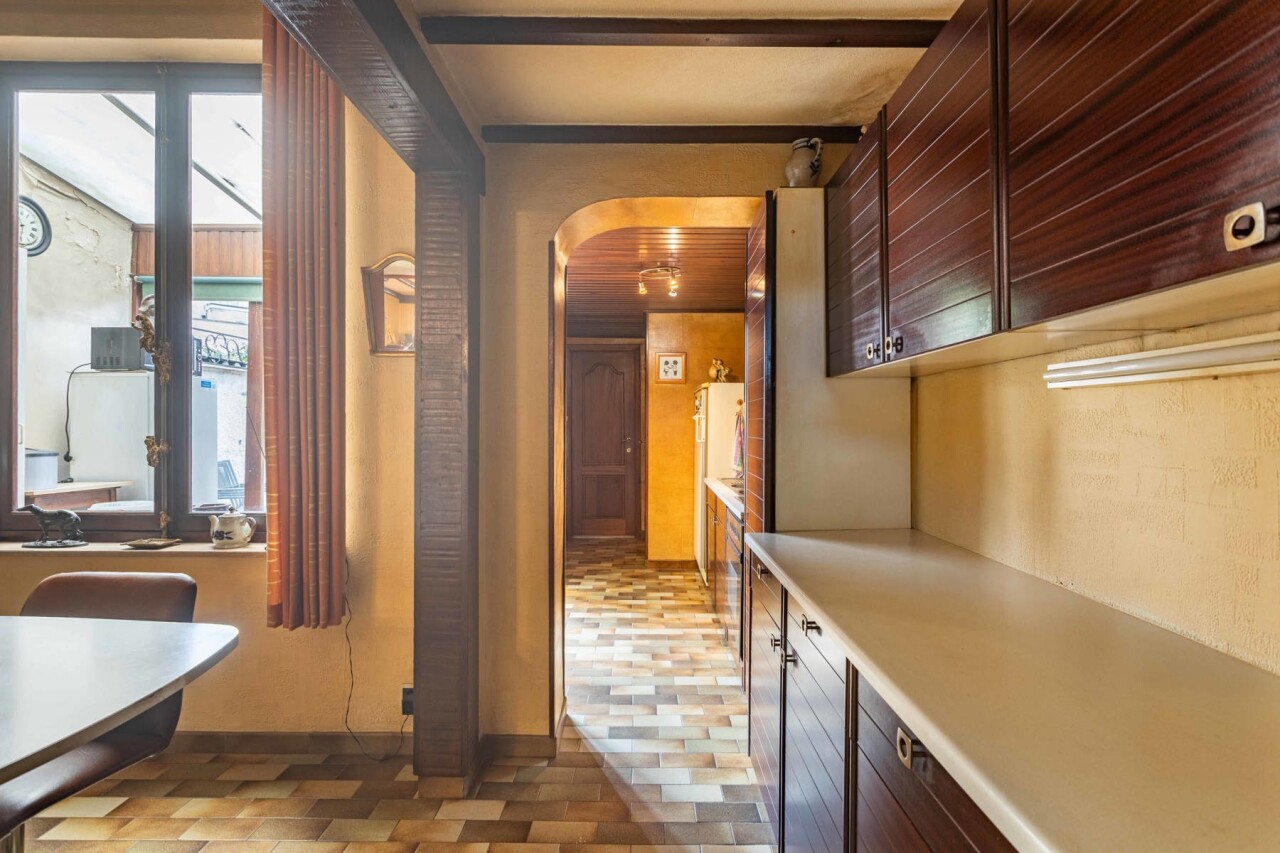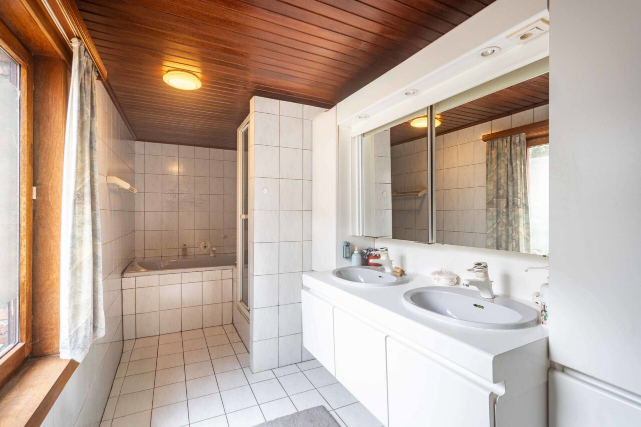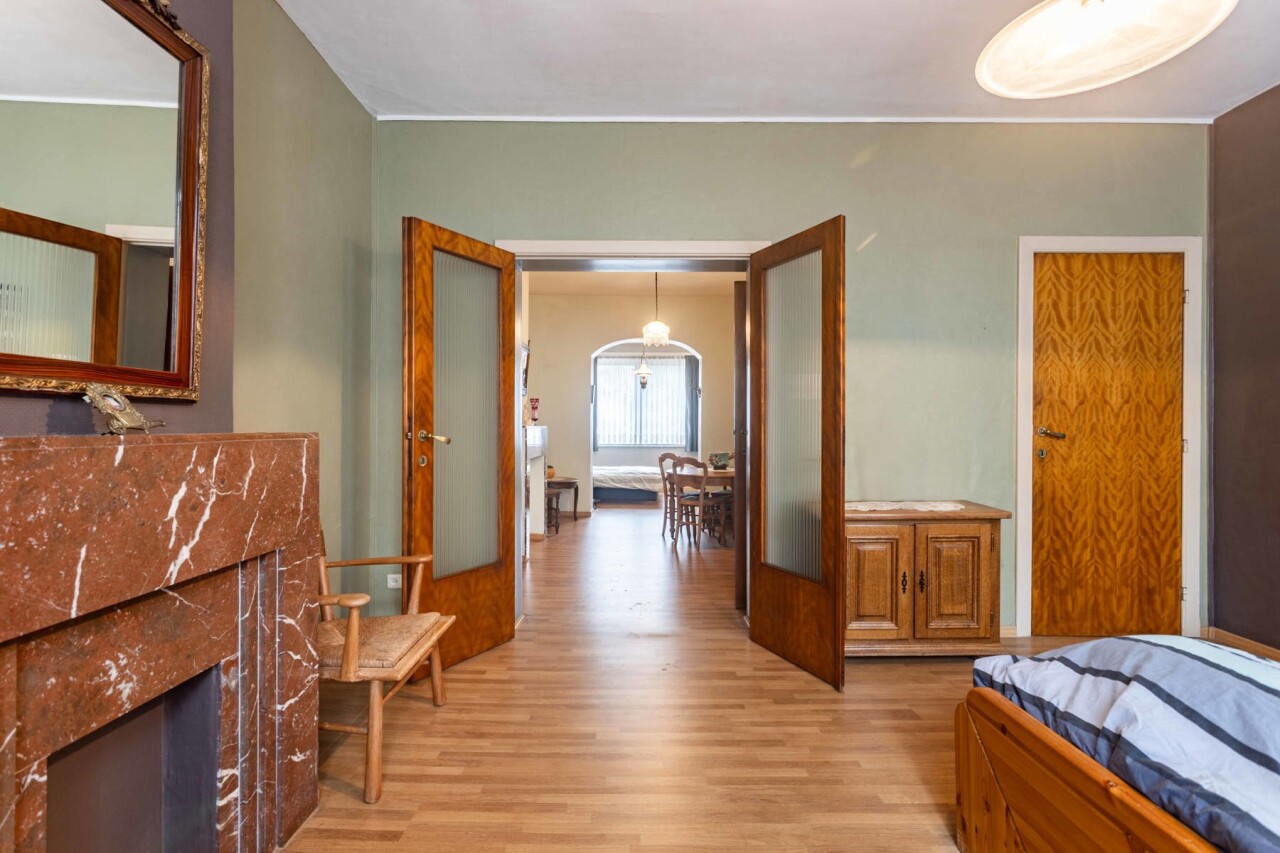 Op het gelijkvloers vinden we een lichtrijke woon- en eetkamer van 26 m², met aansluitend de keuken en bijkeuken. Verder is er een badkamer met bad, douche en dubbele lavabo, evenals een apart toilet. Vanuit de eetkamer heeft u zicht op de veranda/wasplaats en de gezellige stadstuin. Ideaal voor wie groene vingers heeft en graag tot rust komt in het hart van de stad.