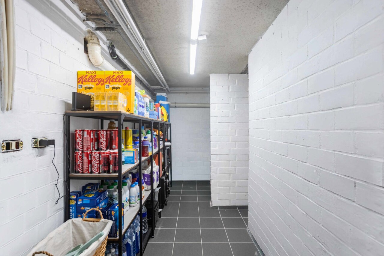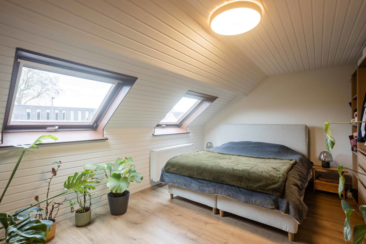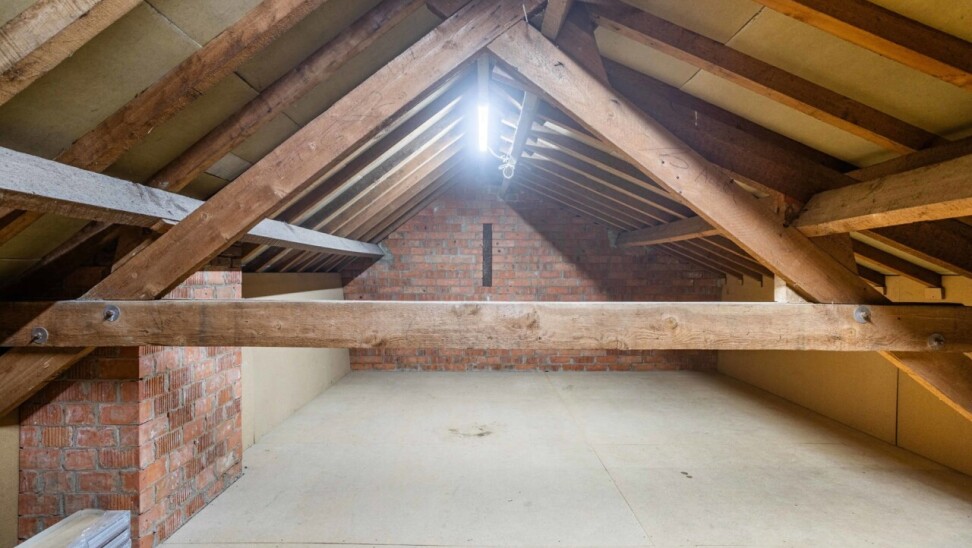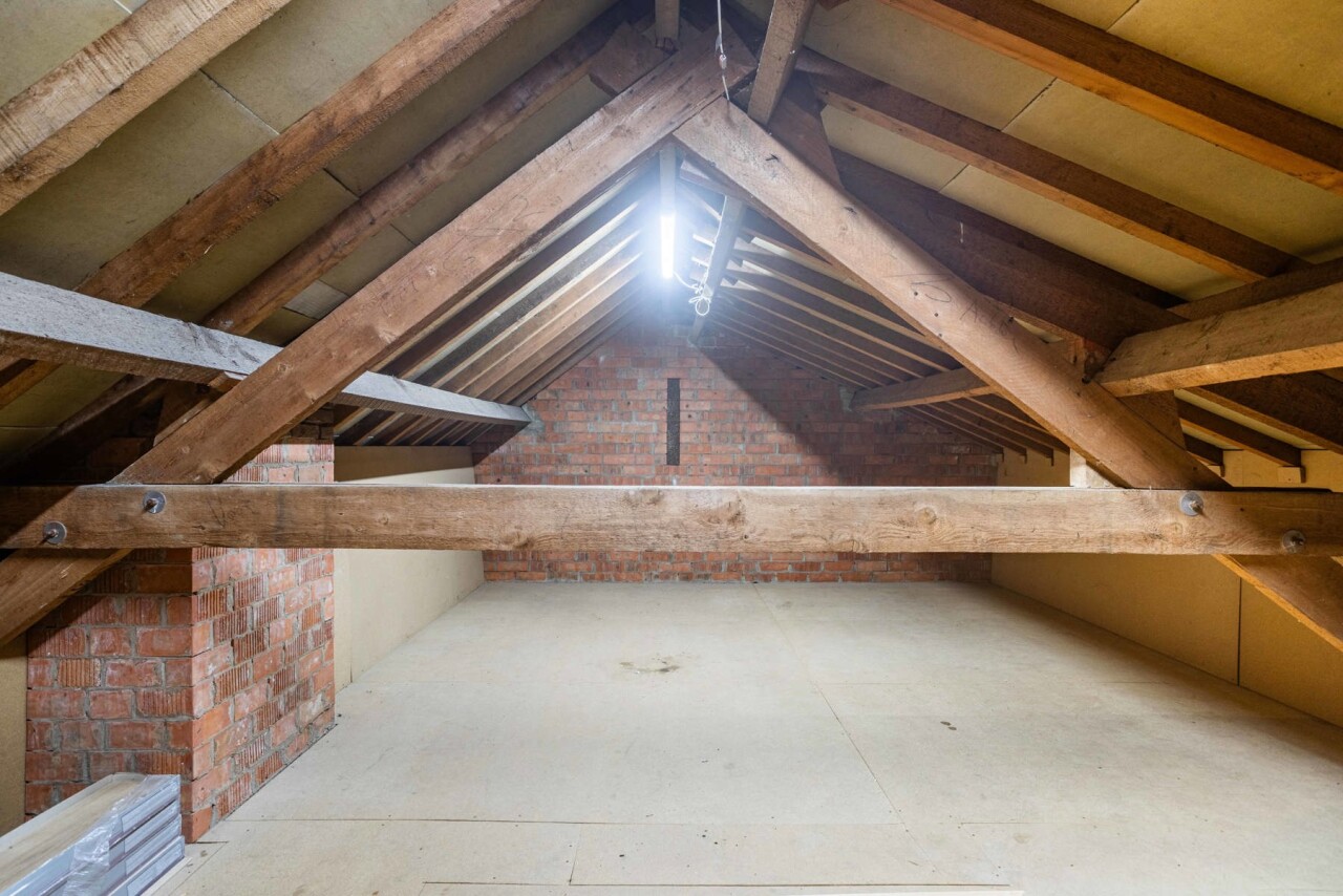 Via een uitschuifbare trap is er toegang tot een ruime opbergzolder.