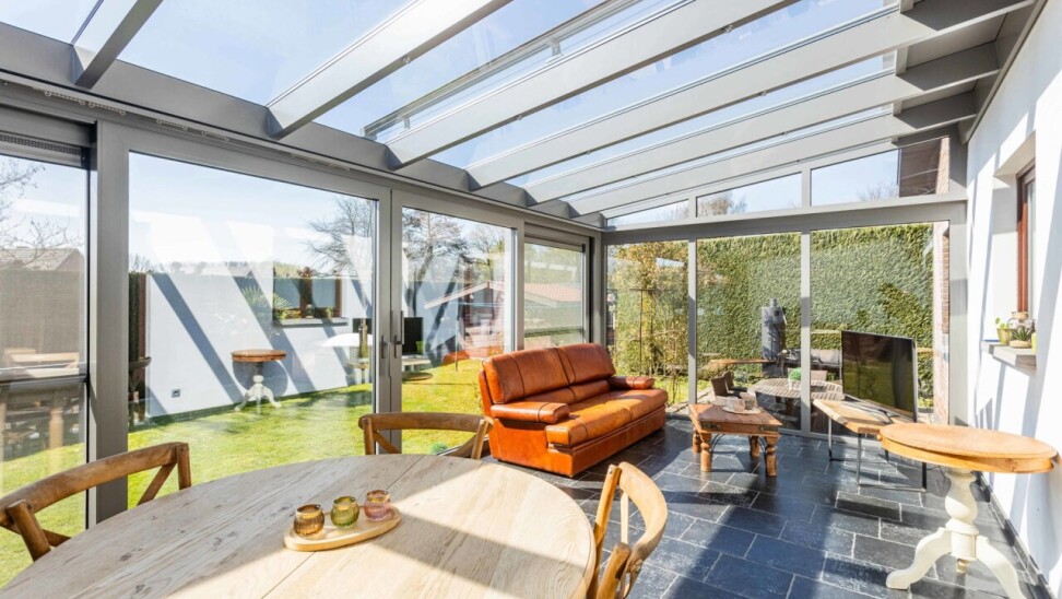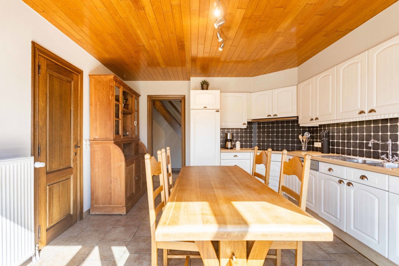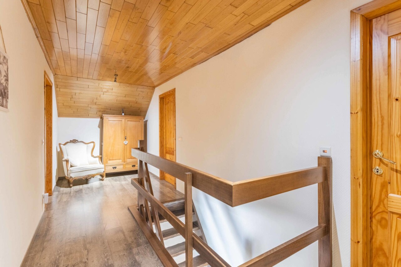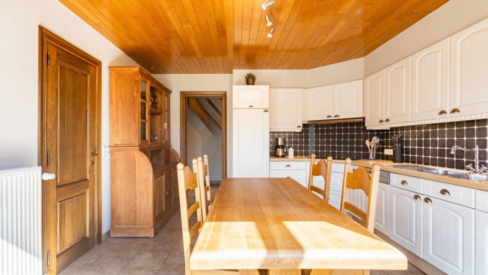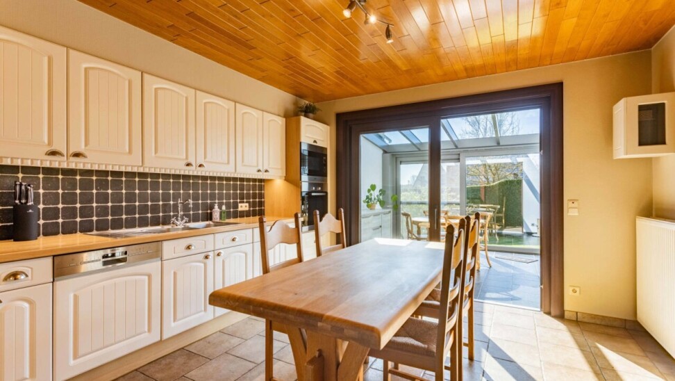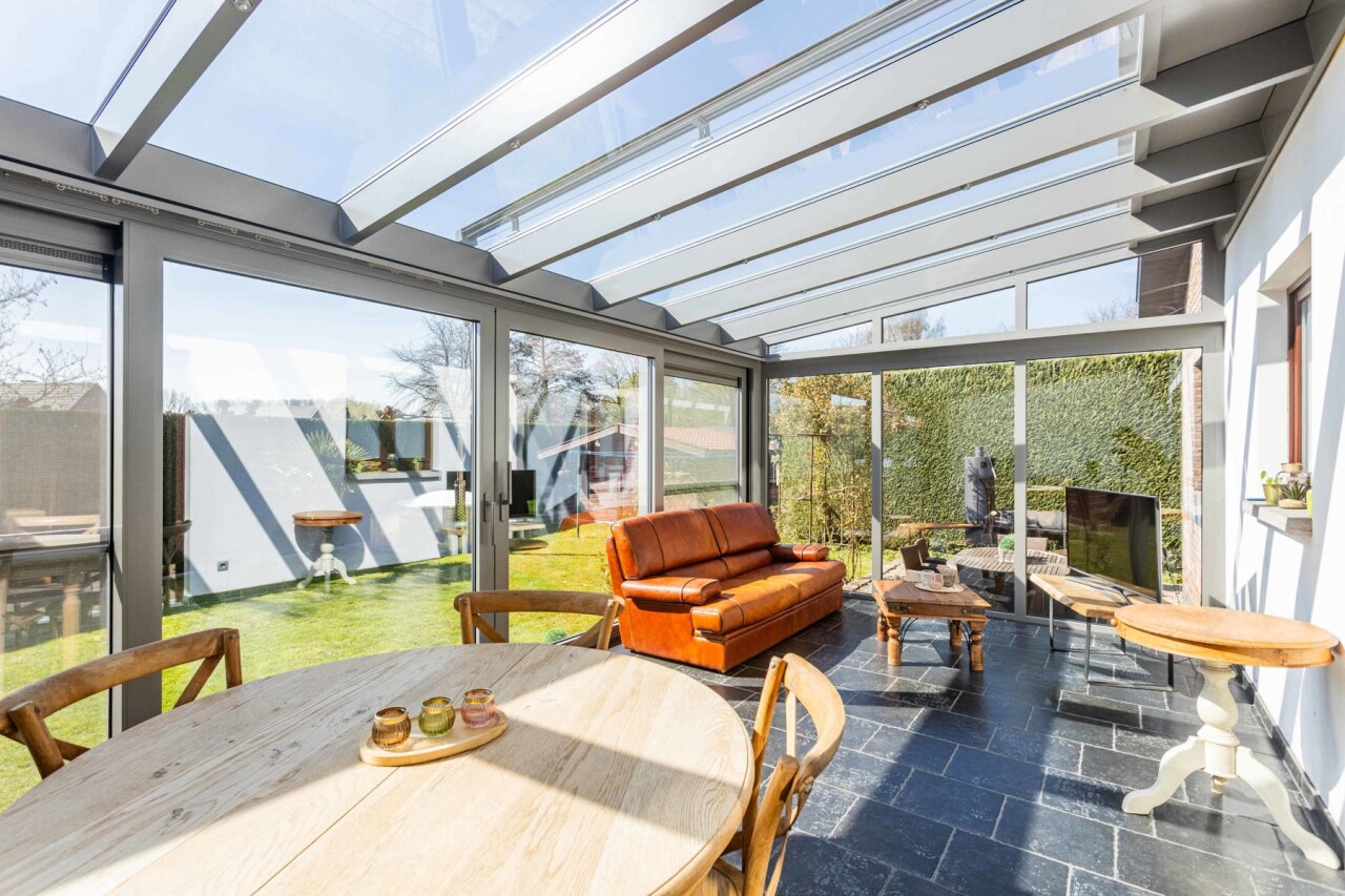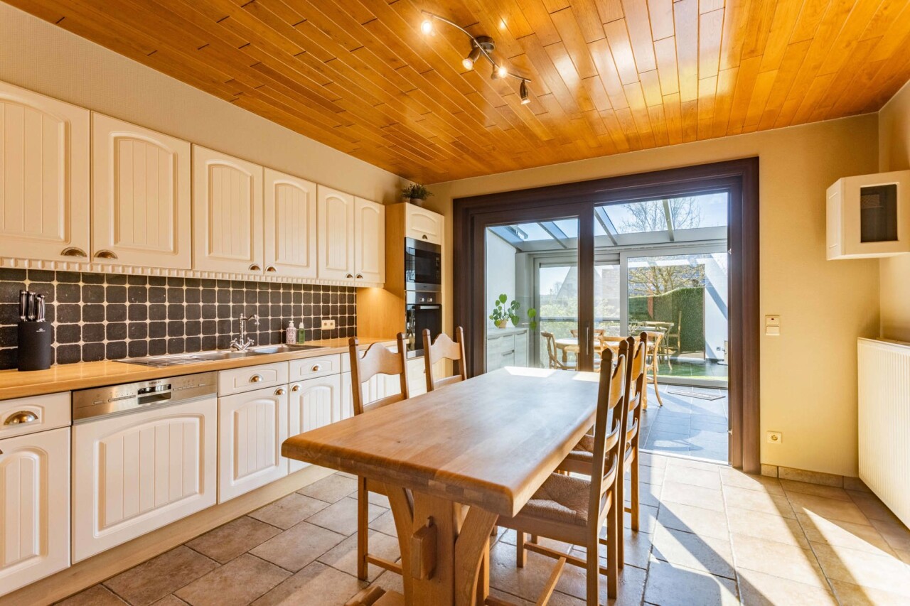 Verder vinden we op het gelijkvloers een volledig geïnstalleerde keuken met aansluitend een prachtige veranda (23m²).