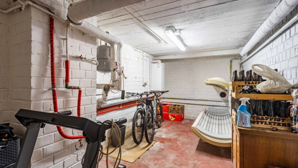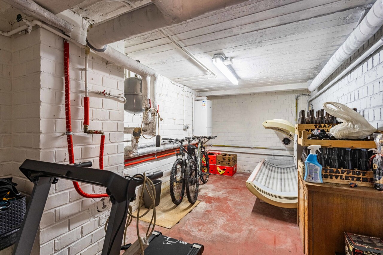 De woning beschikt daarnaast over een inpandige garage voor 2 wagens en verschillende kelderruimtes, samen goed voor 74m².