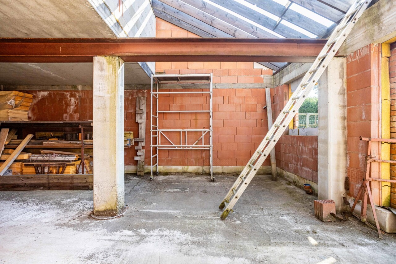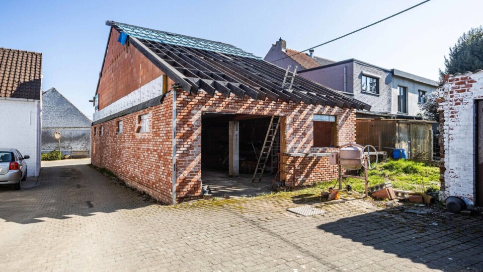 Momenteel staat hier een vergunde loods van 50 m² en achterliggende garage van 30 m² welke ideaal voor hobby, stockage of bedrijfsopslag.