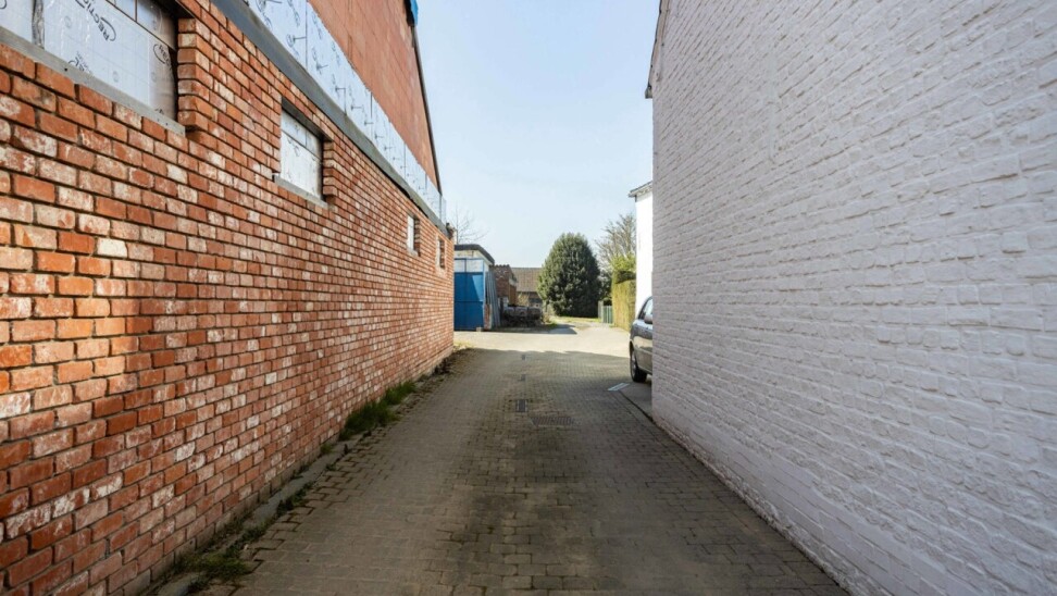 De toegang tot de achterliggende garage is voorzien via een losweg naast de woning.