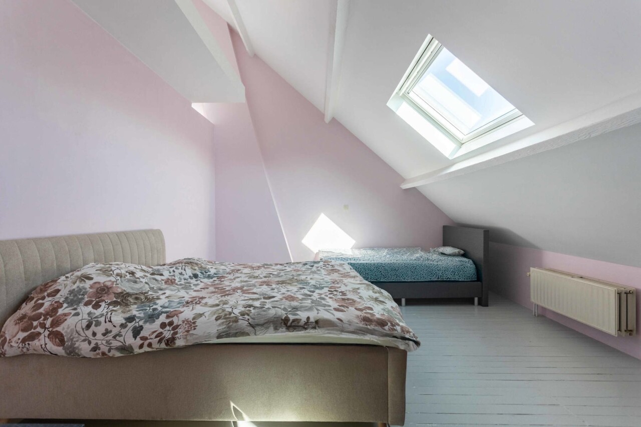 Er werden 2 grote slaapkamers voorzien, waarvan één met mezzanine, een badkamer met plaats voor een ligbad, een apart toilet en een nachthal. Enkele de grootste slaapkamer met mezzanine werd volledig afgewerkt.
