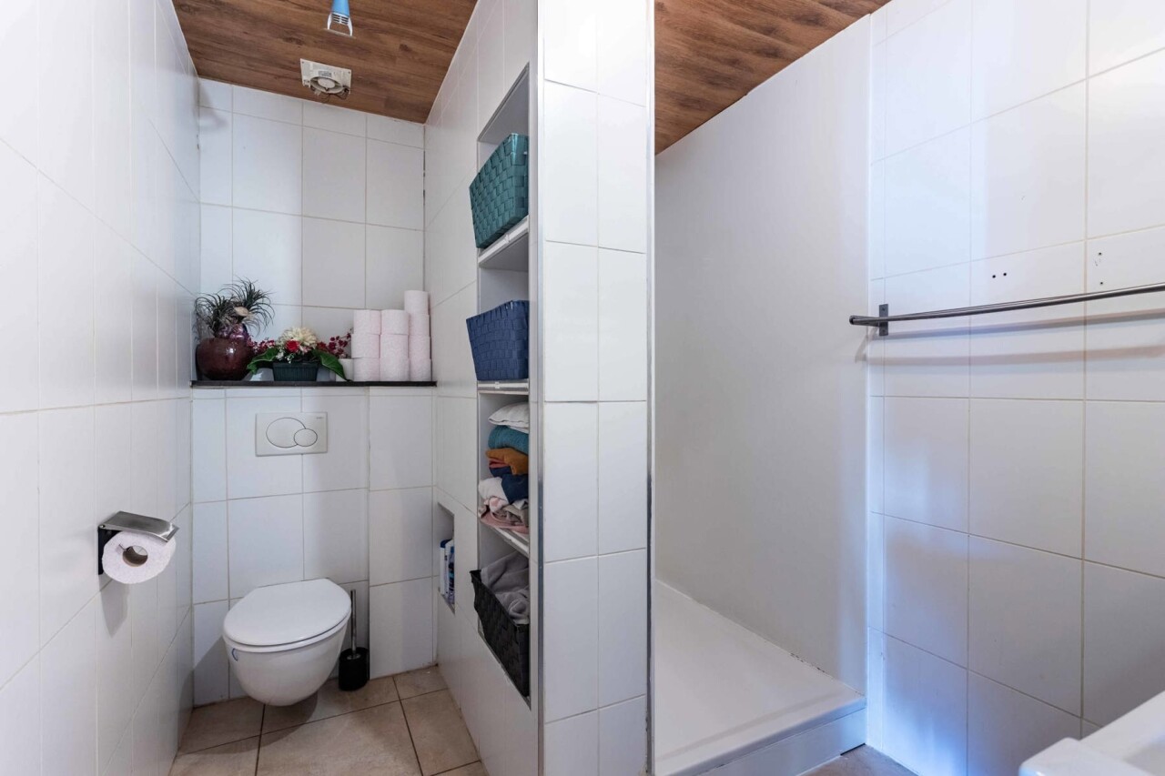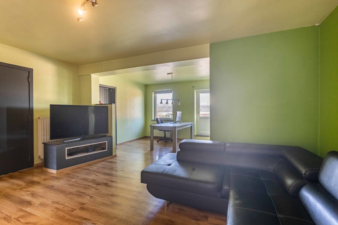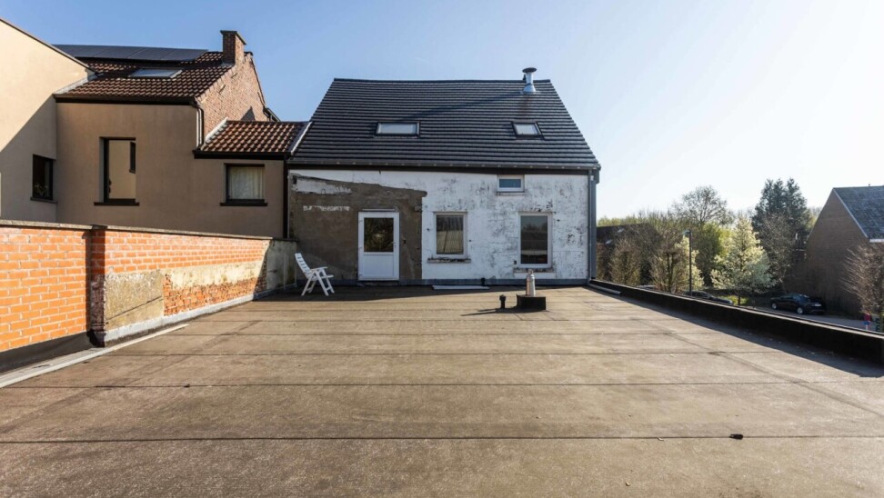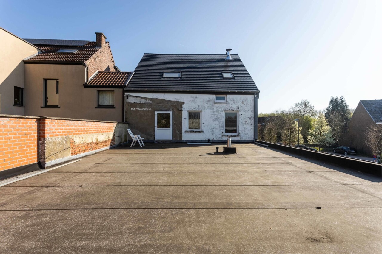 Via de woonkamer heeft men toegang tot het plat dak waar men een prachtig terras kan creëren.