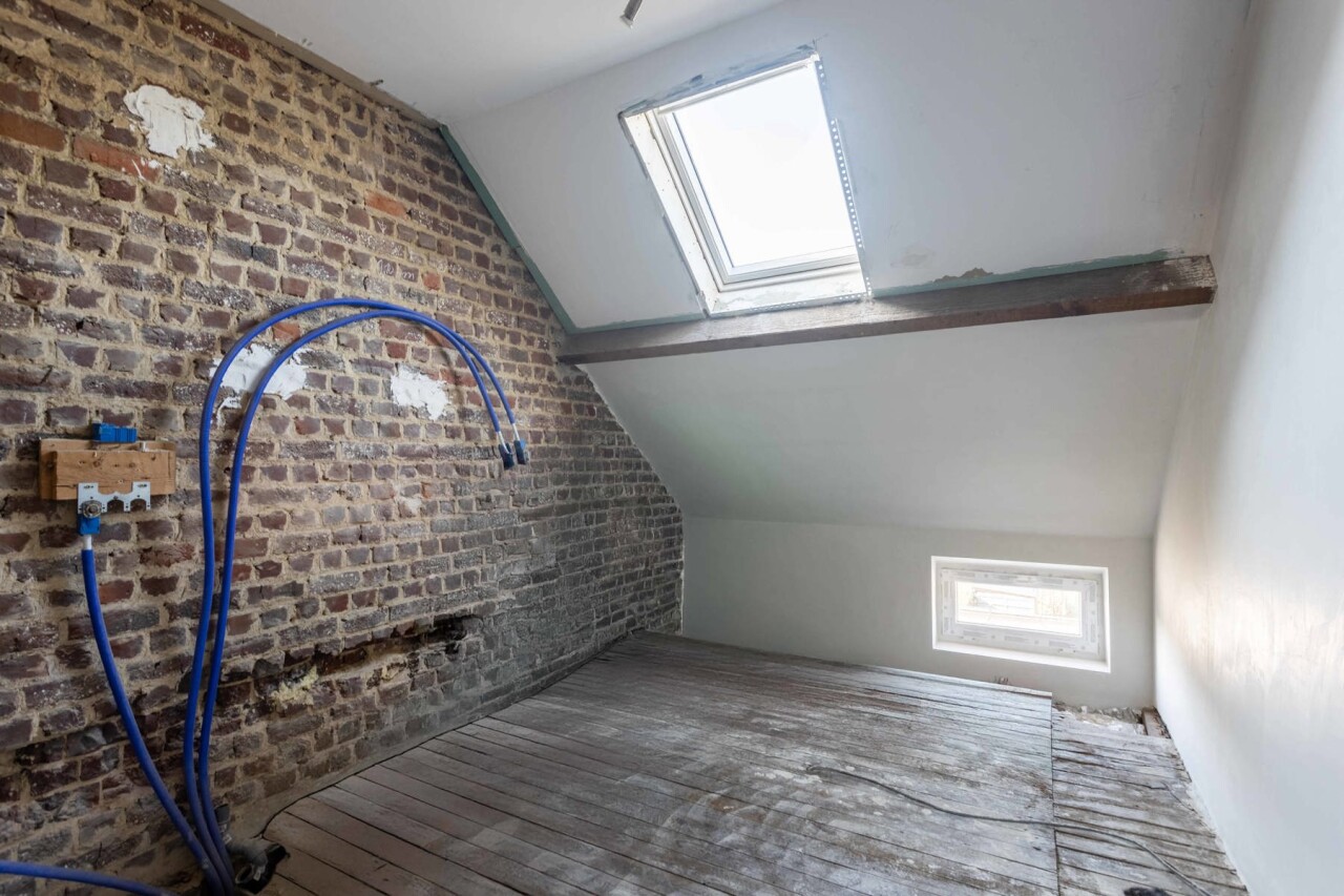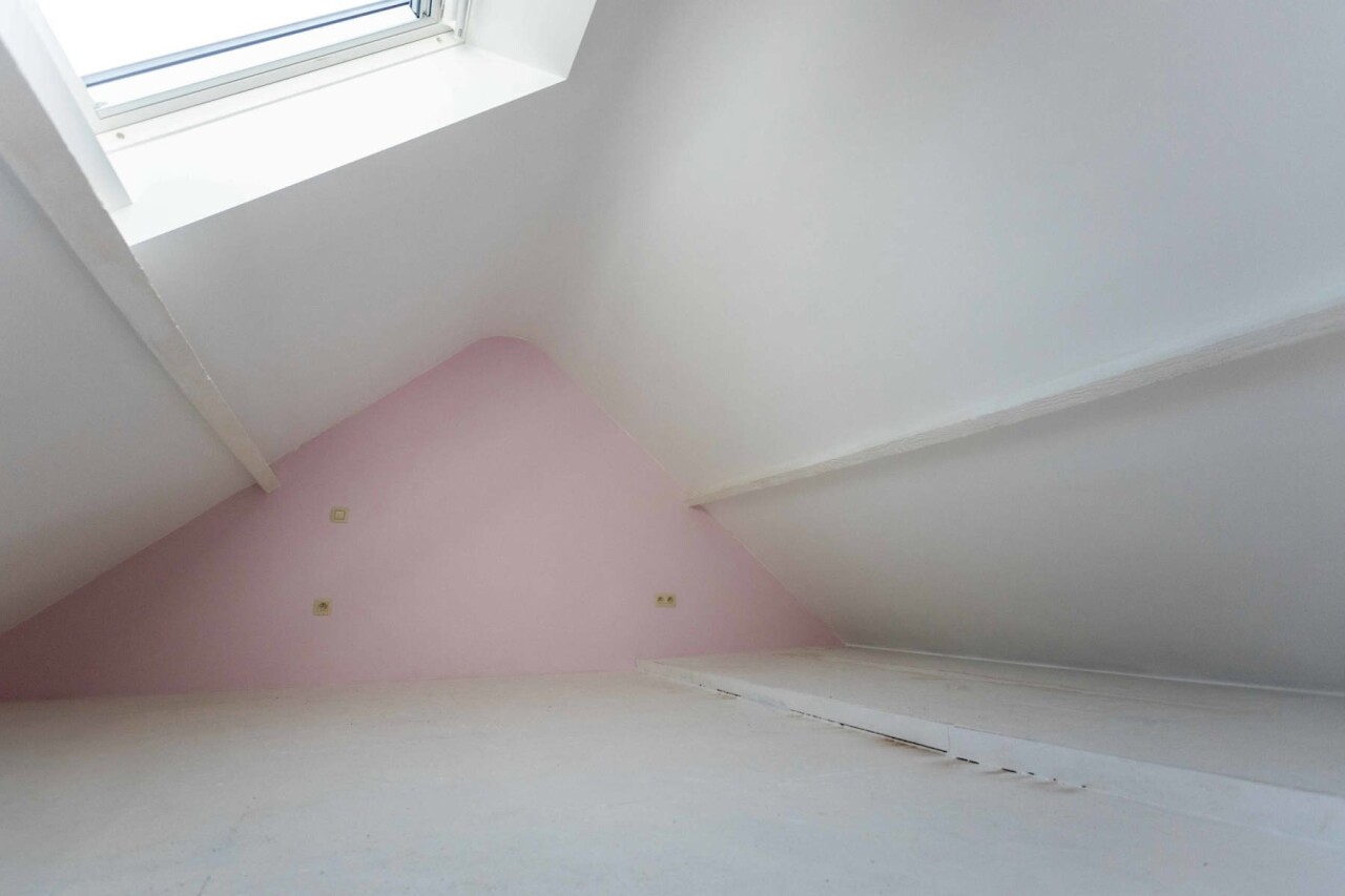 Via de vaste trap komt men op de zolderverdieping (90m²) waar verschillende indeling en opfrissingswerken werden uitgevoerd.