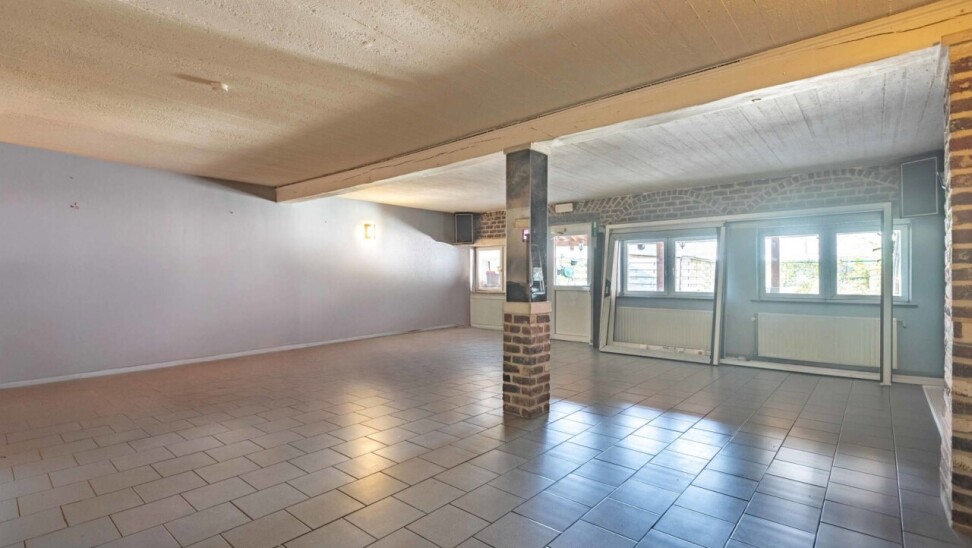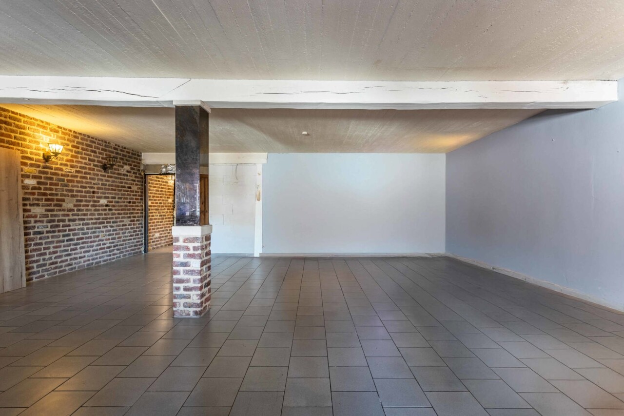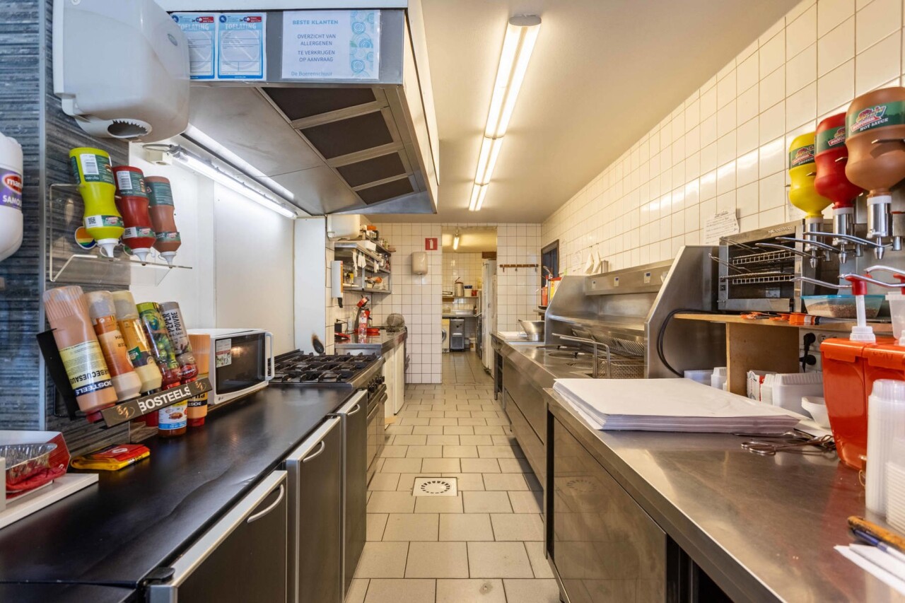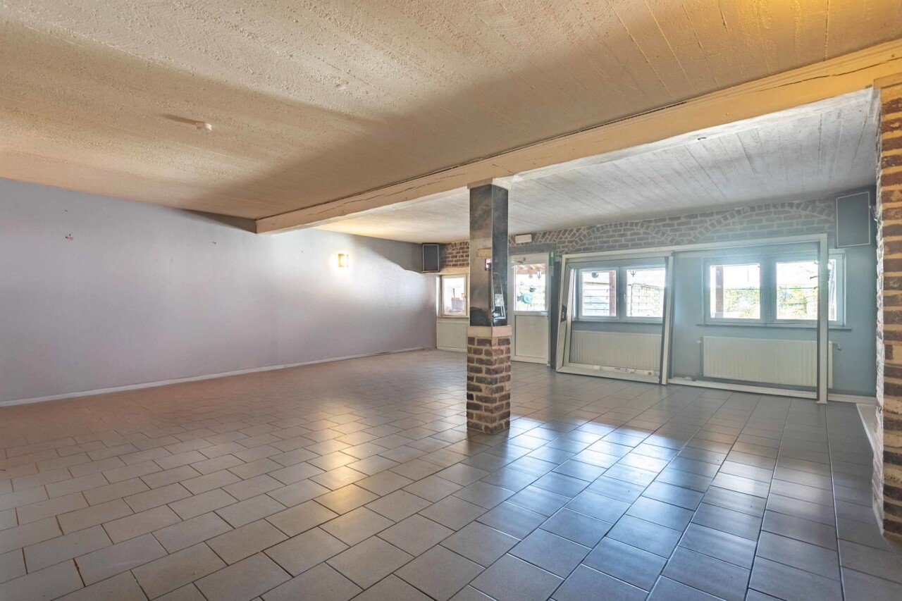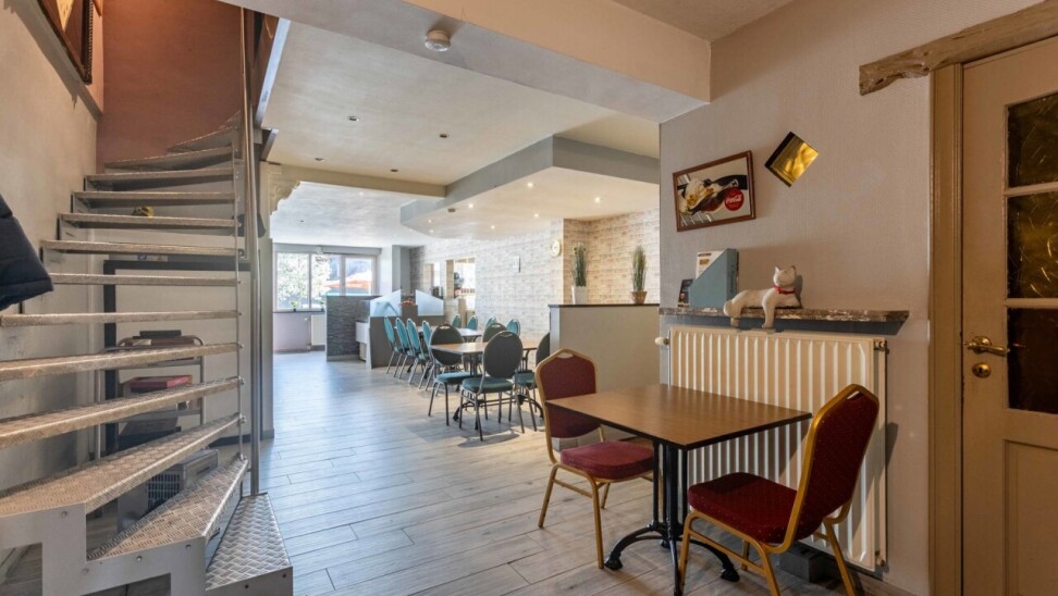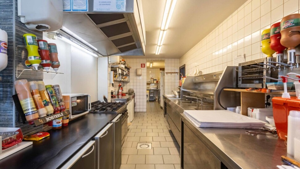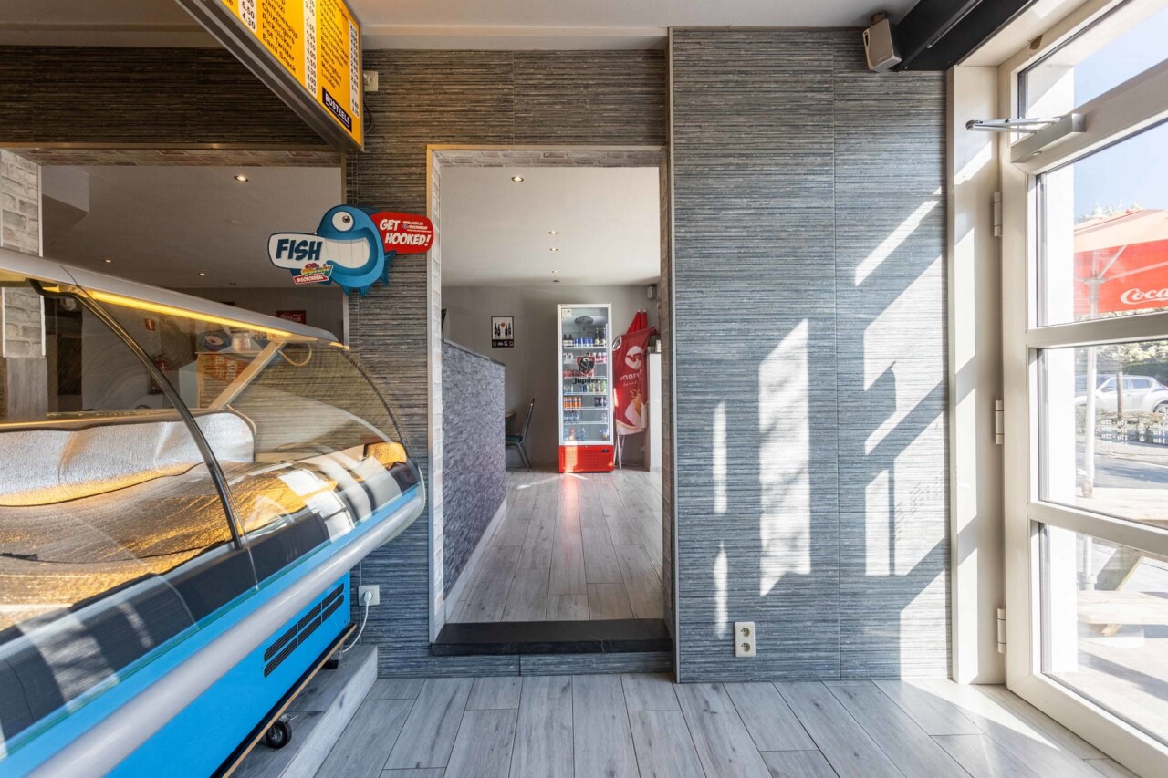 Momenteel wordt er in deze handelswoning een frituur uitgebaat, maar indien gewenst en mits kleine aanpassingen kan de gelijkvloers van 167m² omgetoverd worden tot een ruimte met andere doeleinden en met een achterliggende (feest)zaal van 66m² als grote surplus. Ben je toch een friturist in hart en nieren? Dan kan men meteen aan de slag, want ook de inboedel maakt deel uit van de verkoop.
