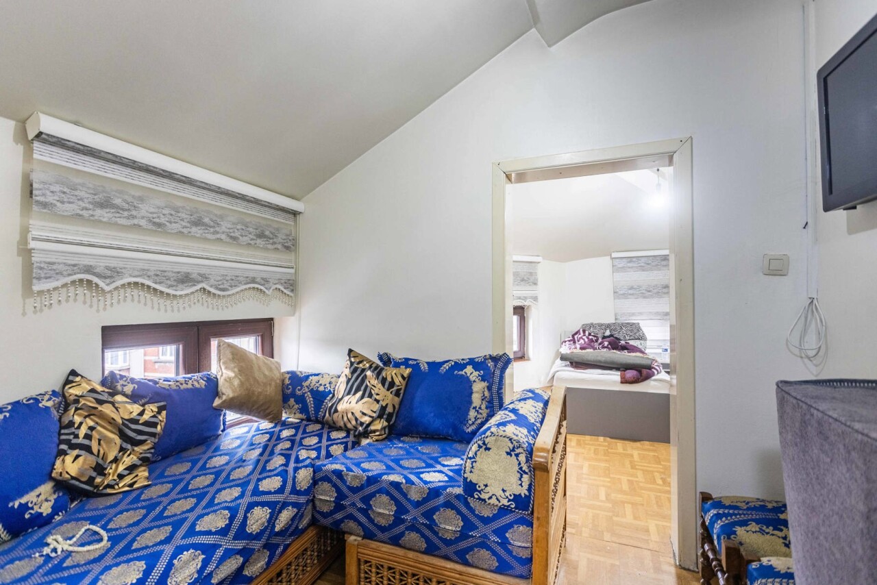 Op de derde verdieping vinden we een volledig ingerichte studio (33m²) met keuken, douche, toilet en twee slaapkamers.