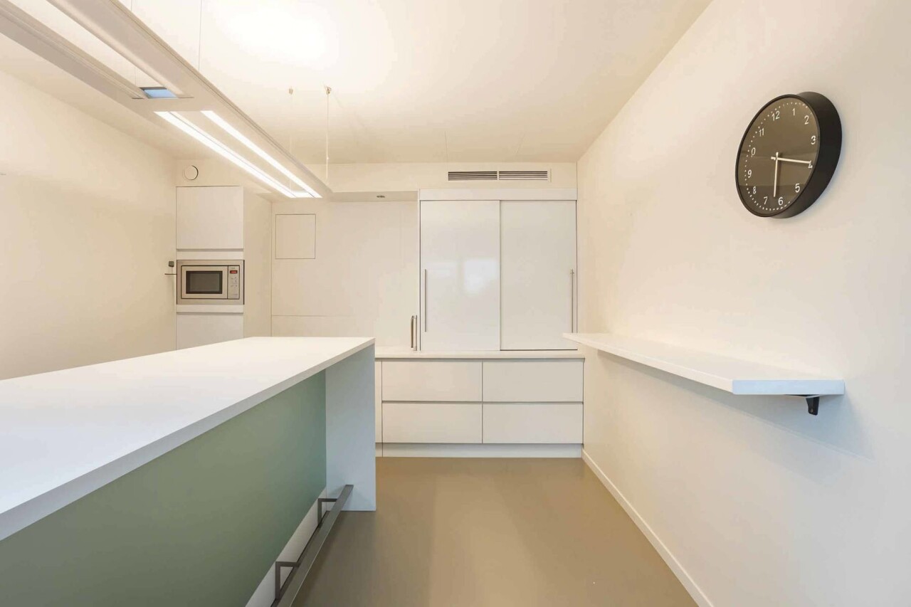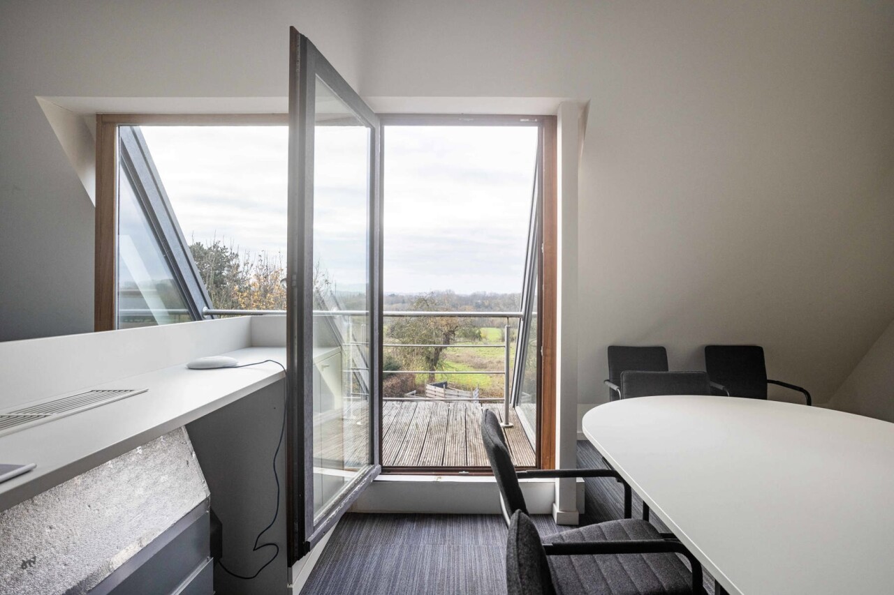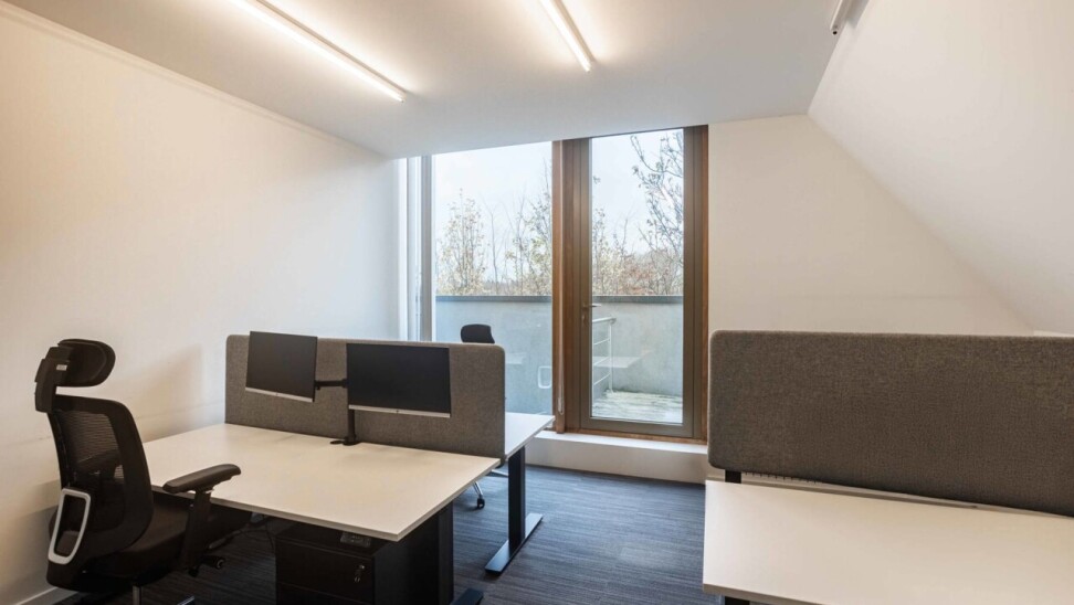 Een ruime, volledig uitgeruste keuken die perfect dienst kan doen als gezamenlijke eetruimte, evenals 6 kantoorruimtes (tussen 14 m² en 27 m²).