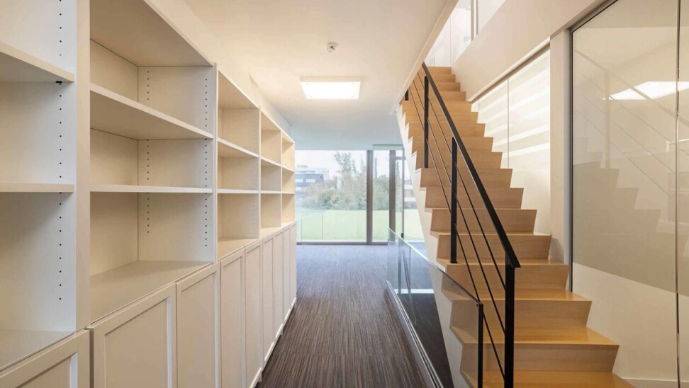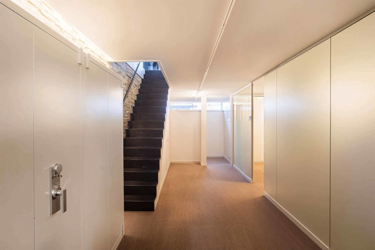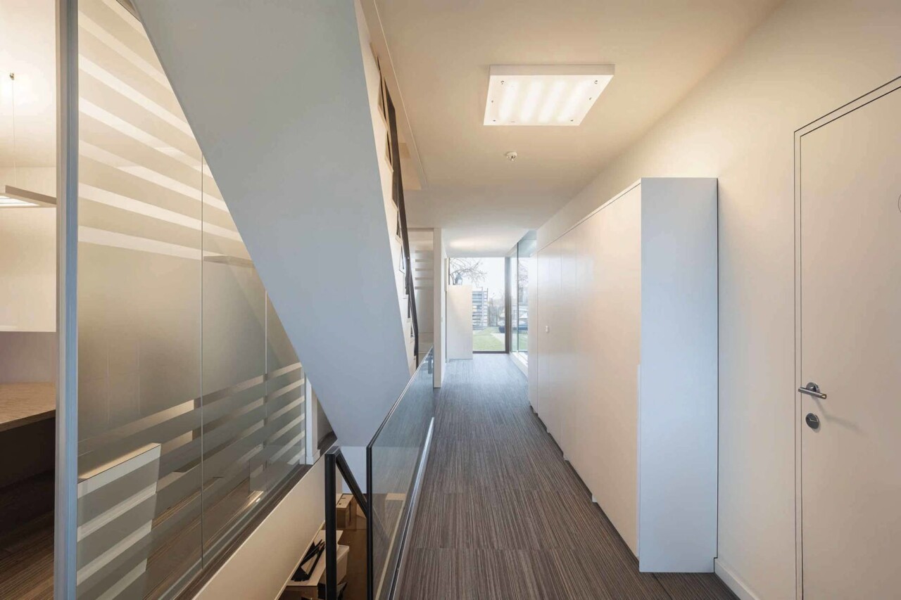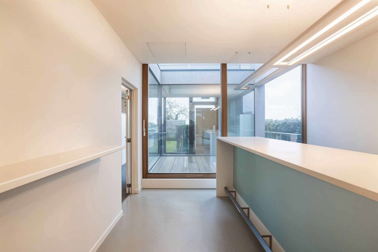 Het volledige gebouw is uitgerust met een aircosysteem en afgewerkt met moderne en kwalitatieve materialen.