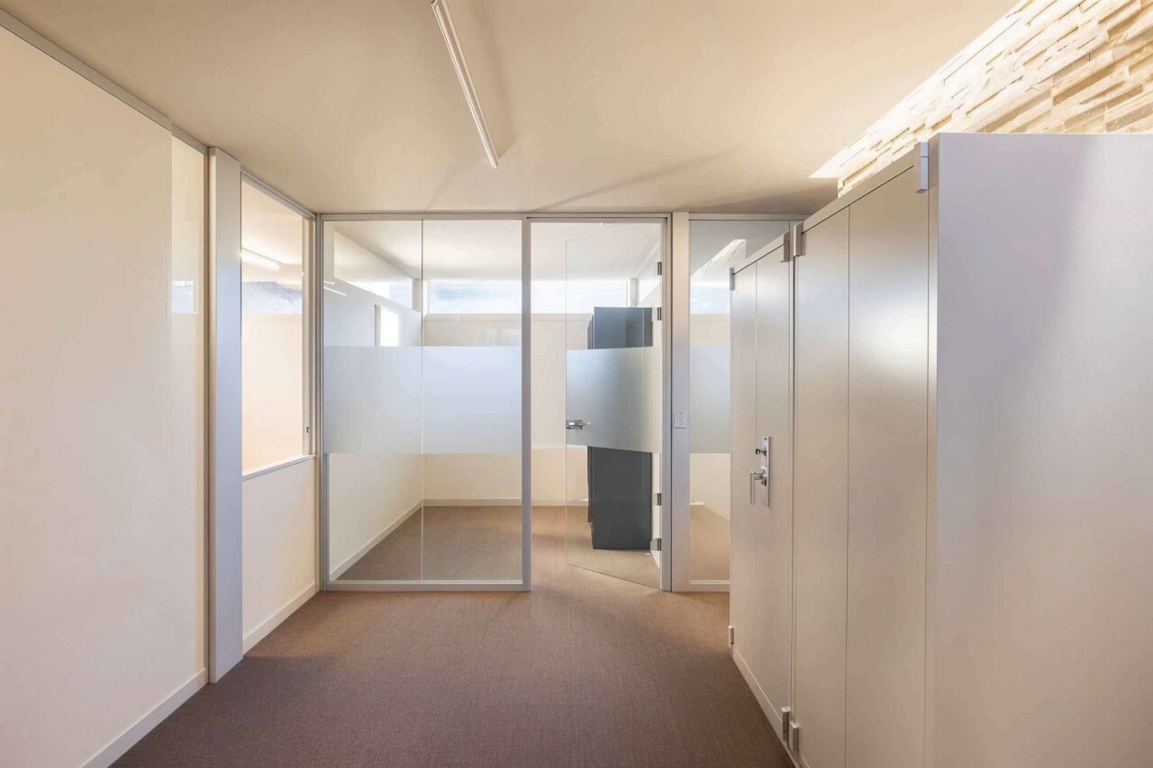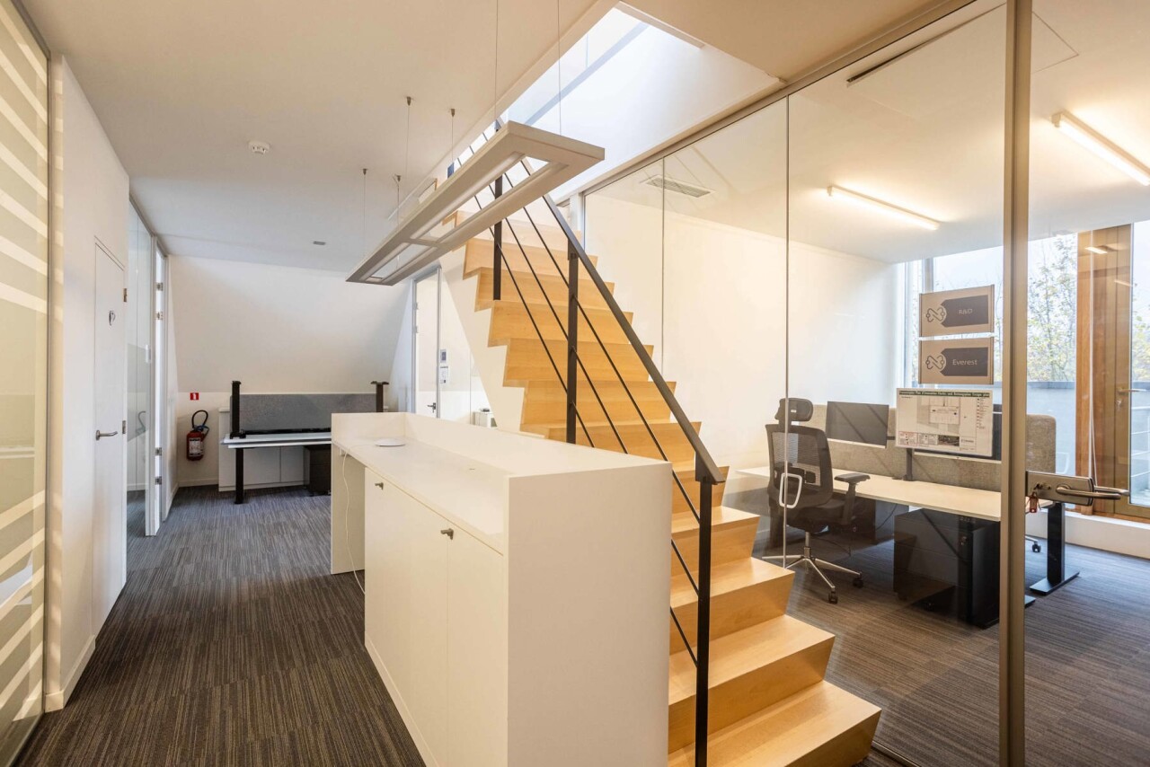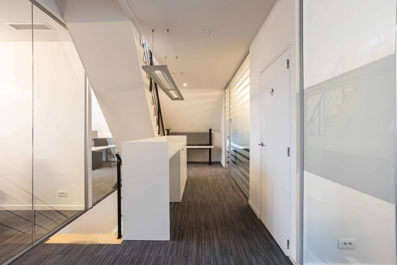 In totaal beschikt het gebouw over 17 afzonderlijke bureauruimtes, allemaal gescheiden door glazen wanden, wat zorgt voor een open en professionele uitstraling. Daarnaast zijn er een grote vergaderruimte, een ruime keuken en een toilet op elke verdieping aanwezig.