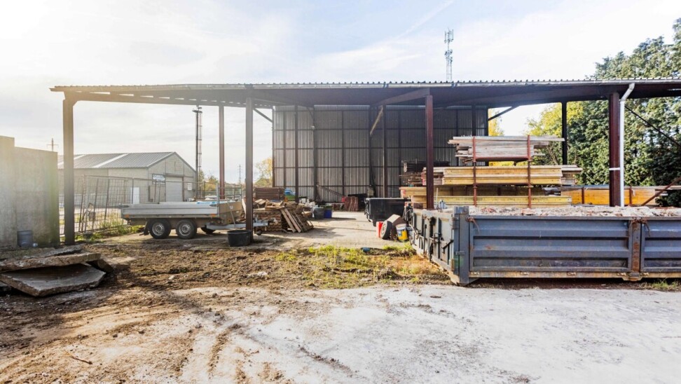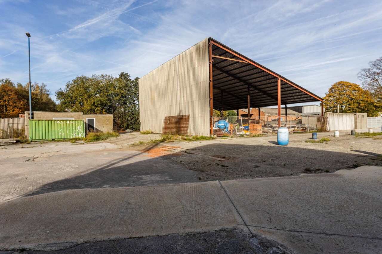 Overdekte opslagruimte met kantoorgebouw op ruim perceel