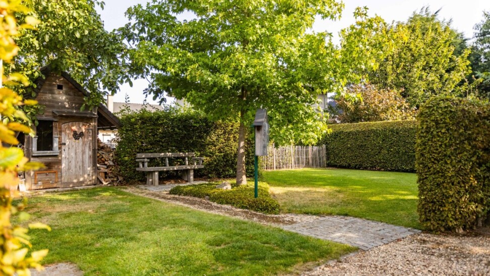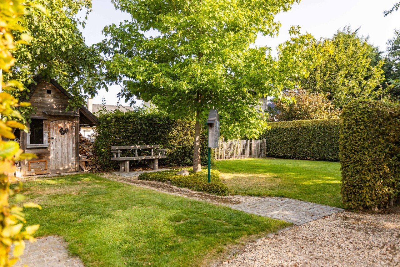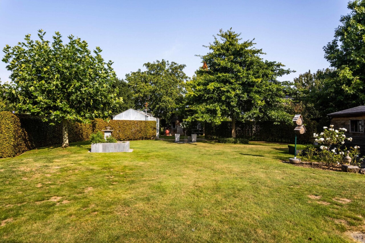Buiten wacht een verzorgde tuin van maar liefst 750 m², voorzien van een serre en een tuinhuis. De tuin is één van de grote troeven van deze eigendom. Ideaal om volledig tot rust te komen.