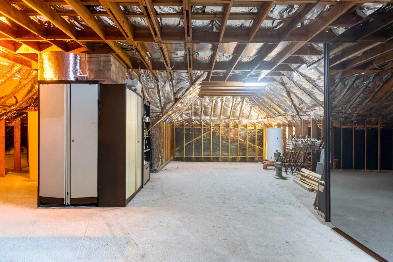 De zolderverdieping (momenteel bereikbaar via de garage) met een oppervlakte van 75 m² (!!) biedt mogelijkheden voor het creëren van twee à drie extra slaapkamers en/of een tweede badkamer.