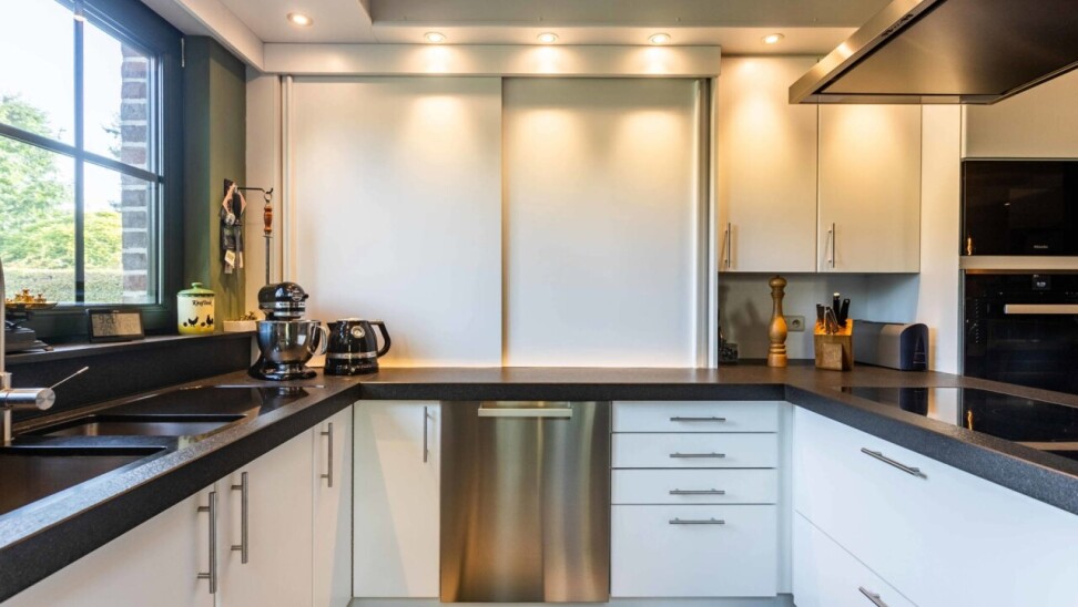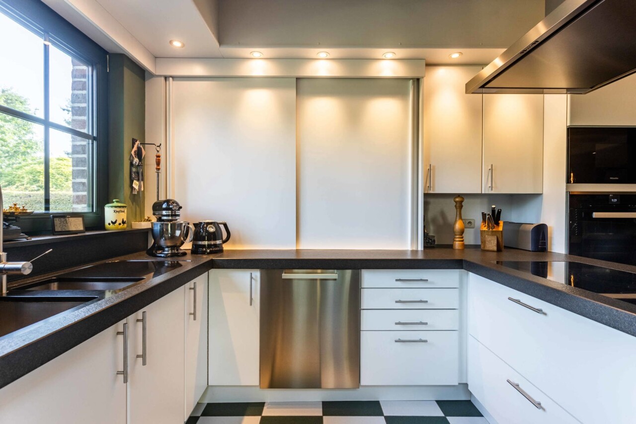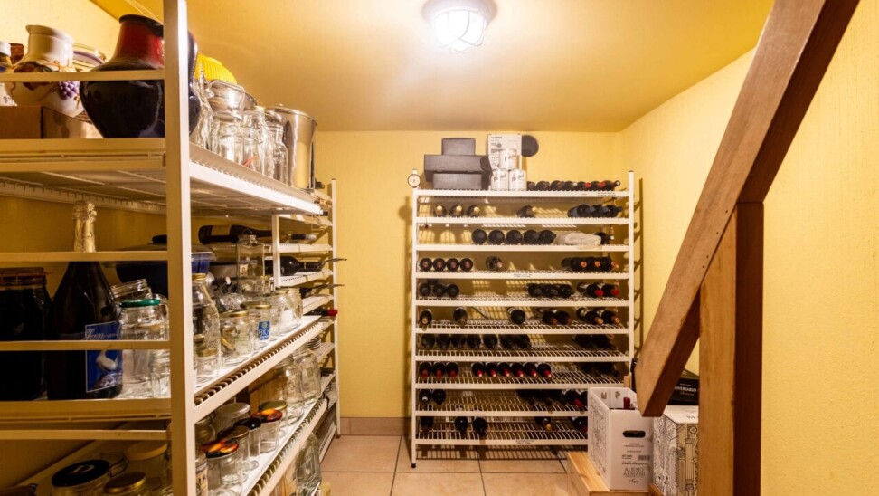 Naast de keuken is er een praktische berging met ingebouwde kasten, die tevens toegang biedt tot de ondergrondse wijnkelder.