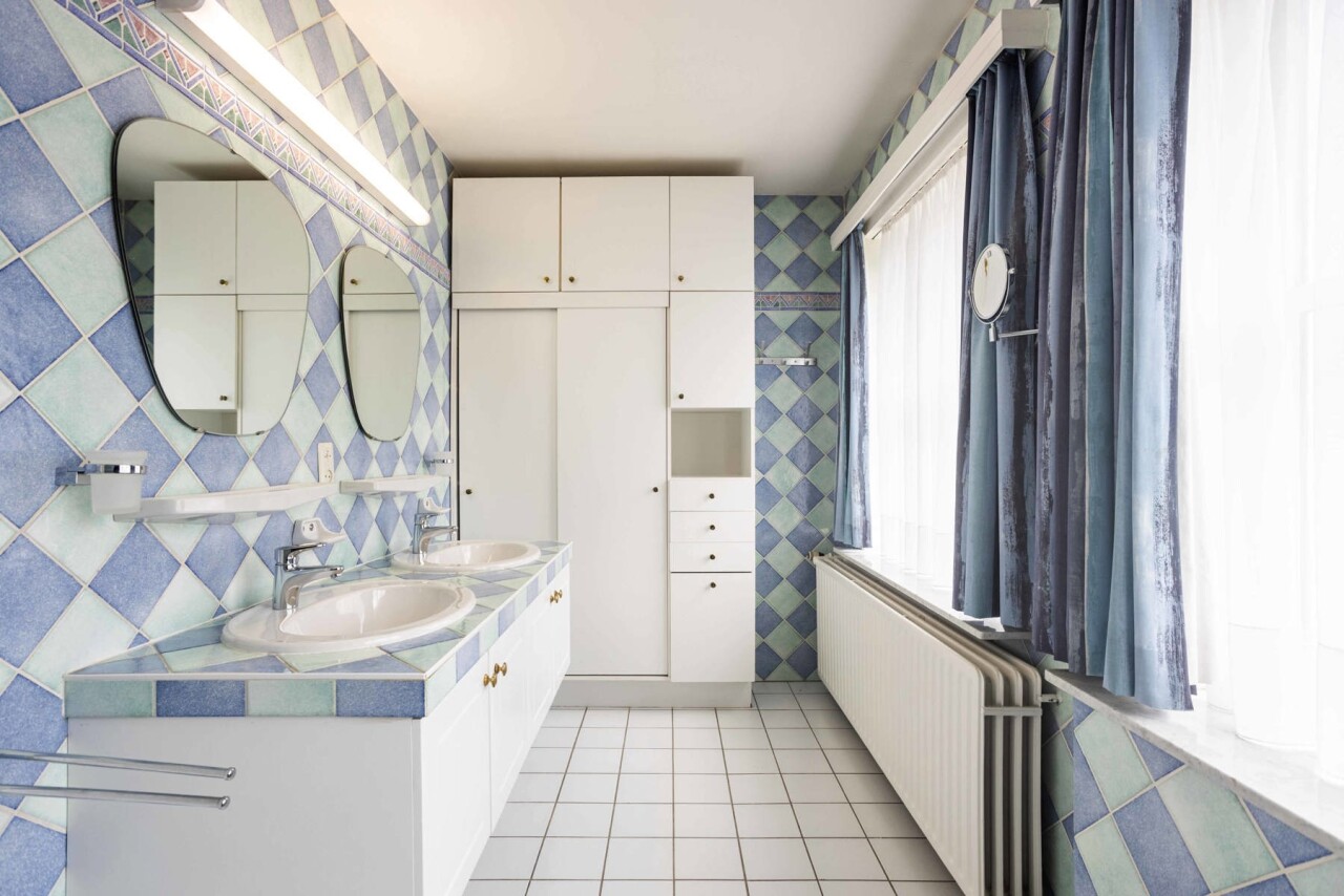 Op het tweede verdiep vinden we twee ruime slaapkamers (18,5 m² en 12,5 m²), elk voorzien van een lavabo, en een master bedroom (21 m²) met ensuite badkamer en dressing. Daarnaast is er nog een ruime badkamer met een grote inloopdouche, én een extra douchekamer met toilet.